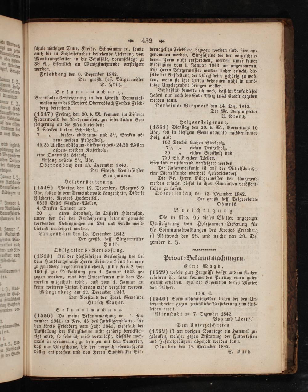 Obererlenbach den 13. Dezember 1842. Der großh. heſſ. Beigeordnete Ohmeis. Ber ich tig un