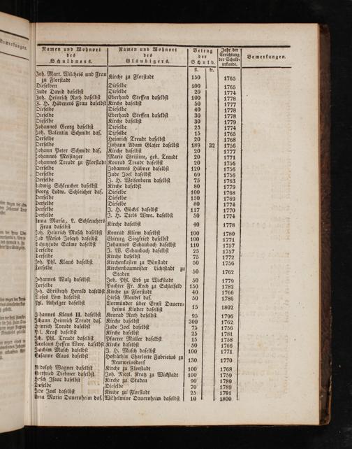 eee Namen und Wohnort Betrag Jahr der des der I e Bemerkungen. Gläubigers. Schuld. A fl. 22 Kirche zu Florſtadt 150 1765 Dieſelbe 100 1765 Dieſelbe 20 1774 Eberhard Steffen daſelbſt 100 1778 Kirche daſelbſt 50 1777 Dieſelbe 40 1778 Eberhard Steffen daſelbſt 30 1778 Kirche daſelbſt 30 1779 Dieſelbe 25 1774 Dieſelbe 15 1765 Heinrich Treudt daſelbſt 20 1768 Johann Adam Glaſer daſelbſt 18932 1756 Kirche daſelbſt 20 1777 Marie Chriſtine, geb. Treudt 20 1771 Konrad Treudt daſelbſt 20 1756 Johannes Hübner daſelbſt 120 1756 Jude Joel daſelbſt 69 1756 J. H. Weiſenborn daſelbſt 75 1763 Kirche daſelbſt 80 1779 Dieſelbe 100 1768 Dieſelbe 150 1769 Dieſelbe 80 1774 J. H. Göckel daſelbſt 117 1770 J. H. Diels Wwe. daſelbſt 50 1774 Kirche daſelbſt 40 1778 Konrad Kliem daſelbſt 100 1780 Chirurg Siegfried daſelbſt 100 1771 Johannes Schaubach daſelbſt 110 1757 J. W. Schaubach daſelbſt 25 1757 Kirche daſelbſt 75 177 Kirchenkaſten zu Bönſtadt 50 1756 Kirchenbaumeiſter Lichtſtadt zu 8 Staden 50 1762 Joh. Phl. Erb zu Wickſtadt 50 1779 Pachter Fr. Koch zu Schleifeld[150 1782 Kirche zu Florſtadt 40 1766 Hirſch Mendel 15 50 1786 Vormünder über Ernſt Dauern⸗ 8 heims Kinder daſelbſt 15 1802 Konrad Roth daſelbſt 95 1796 Kirche daſelbſt 300 1762 Jude Joel daſelbſt 75 1756 Kirche daſelbſt 25 1781 Pfarrer Müller daſelbſt 15 1758 Kirche daſelbſt 50 1766 J. H. Muſch daſelbſt 100 1771 Hofräthin Charlotte Fabricius zu 7 Reutweinsdorf 8 13⁰ 177⁰ Kirche zu Florſtadt 100 1768 Joh. Nicol. Kratz zu Wickſtadt 100 1759 Kirche zu Staden 90 1789 Dieſelbe 70 1789 Kirche zu Florſtadt 25 1791 Wilhelmine Dauernheim daſelbſt 10 1800
