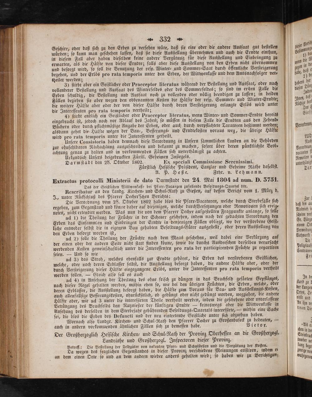 Extractus protocolli Ministerii de dato Darmſtadt den 24. Mai 1304 ad num. D. 3731. Das der Geiſtlichen Wittwenkaſſe bei Pfarr-Vacanzen zufallende Beſoldungs-Quartal btr.