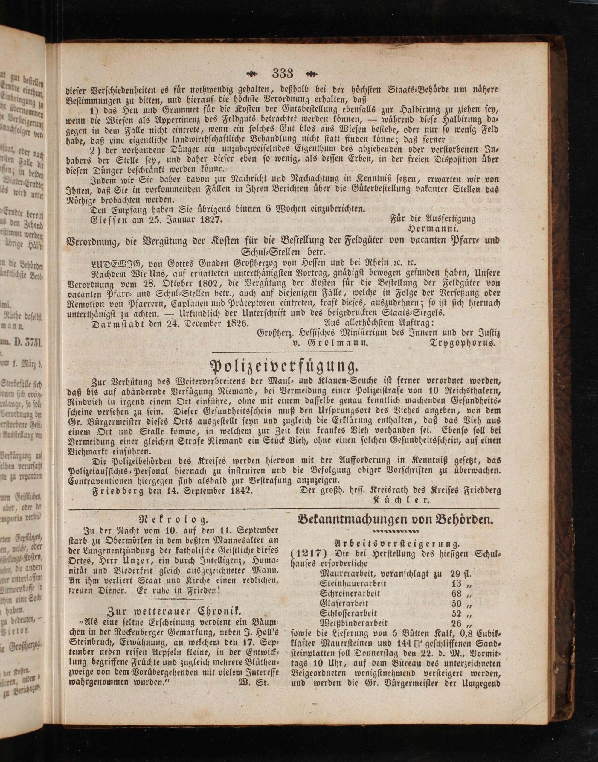 Friedberg den 14. September 1842. Der großh. heſſ. 1 des Kreiſes Friedberg