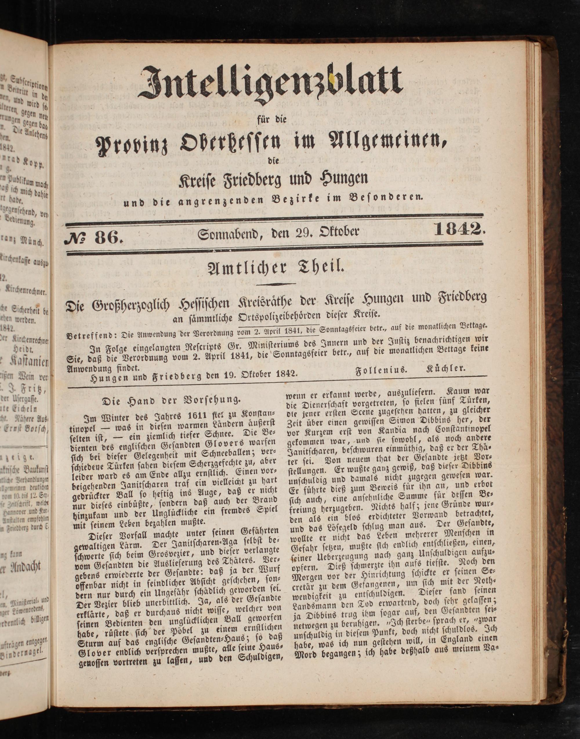 Kreisraͤthe der Kreiſe Hungen und Friedberg Ortspolizeibehoͤrden dieſer Kreiſe.