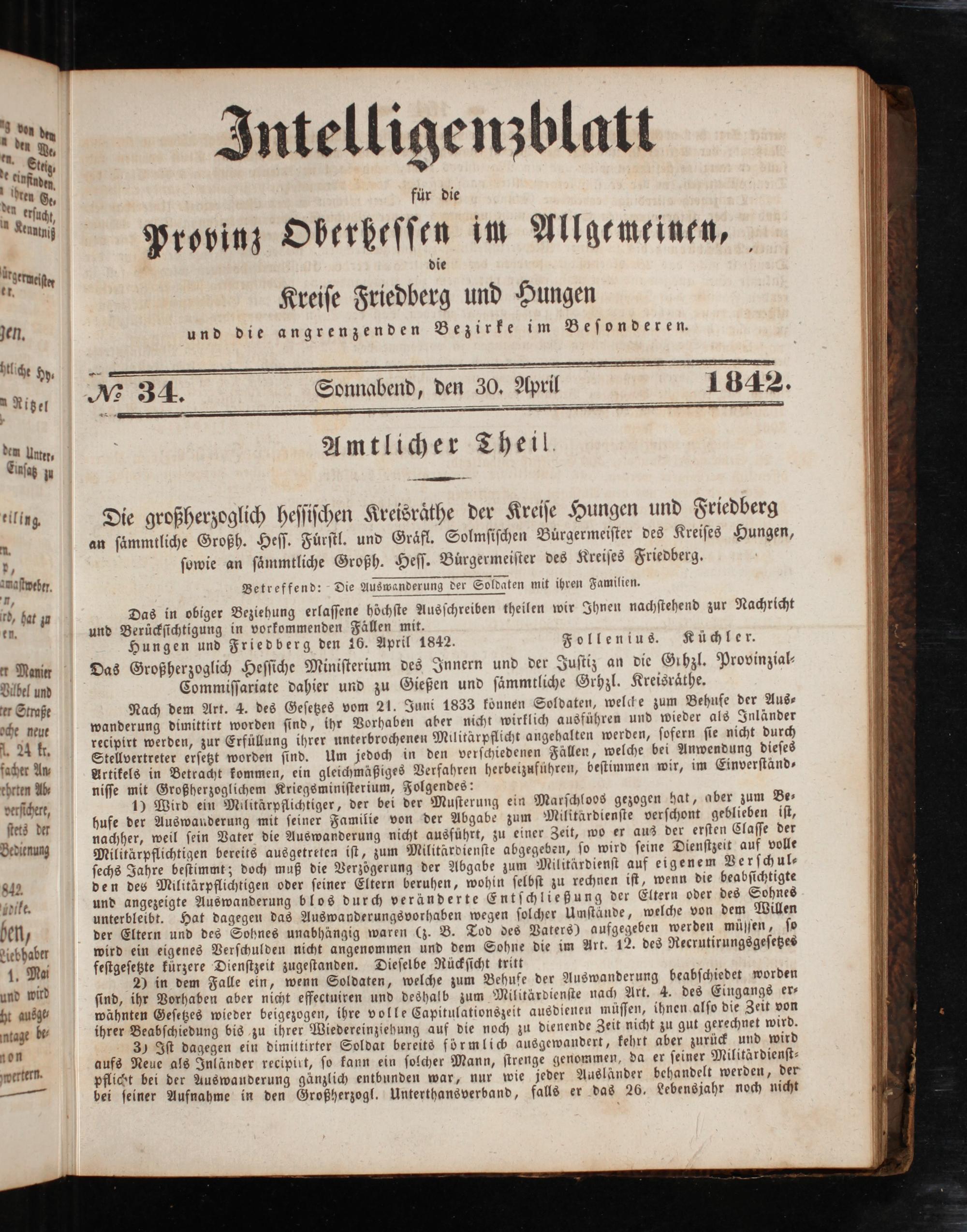Hungen und Friedberg den 16. April 1842. Follenius. Küchler.