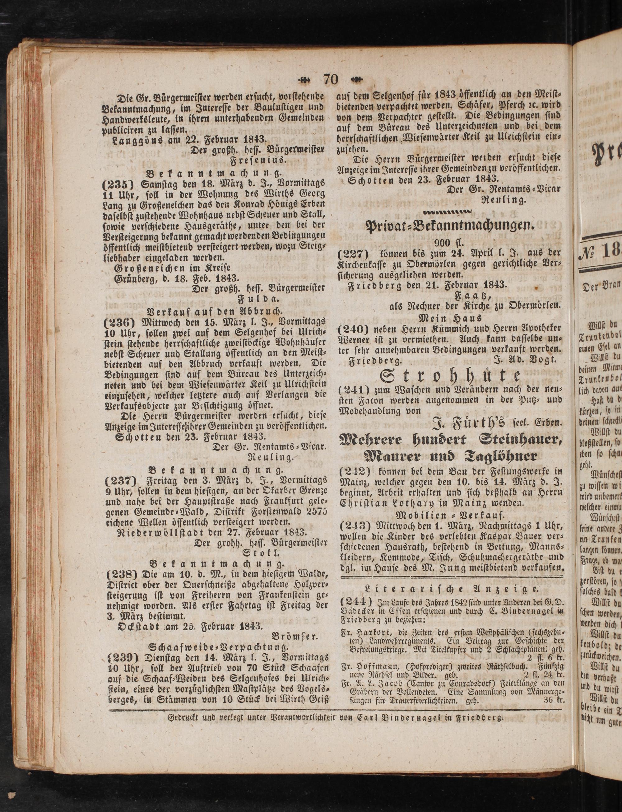 Gedruckt und verlegt unter Verantwortlichkeit von Carl Bindernagel in Friedberg.