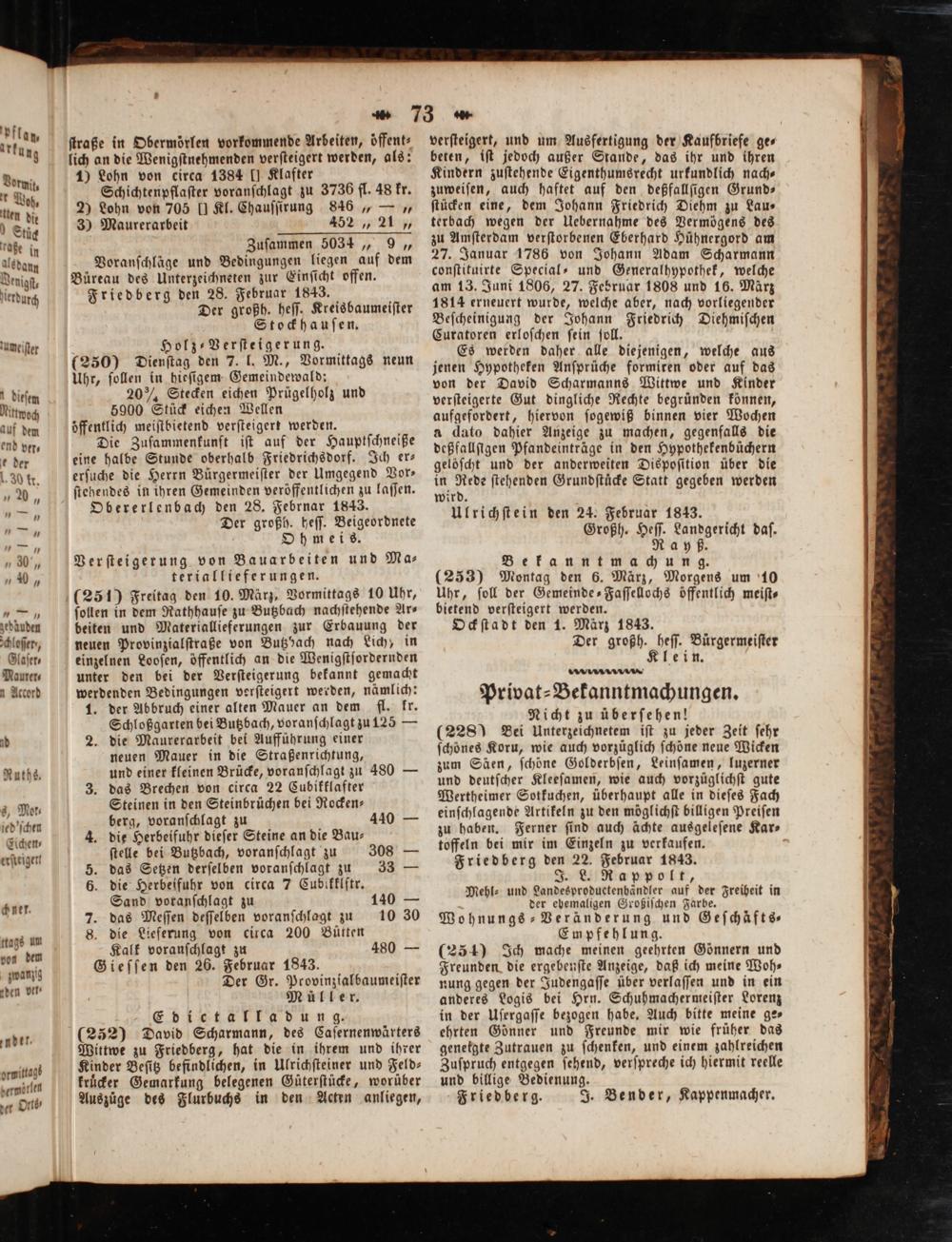 Ulrichſtein den 24. Februar 1843.