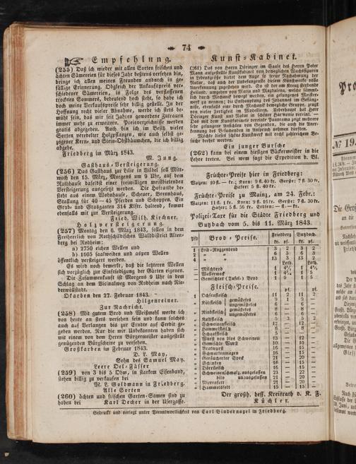 Früchte⸗Preiſe hier in Friedberg: Waizen: 10 fl.— kr.; Korn: 9 fl. 40 kr. Gerſte: 7 fl. 30 kr. Hafer: 5 fl. 40 kr.