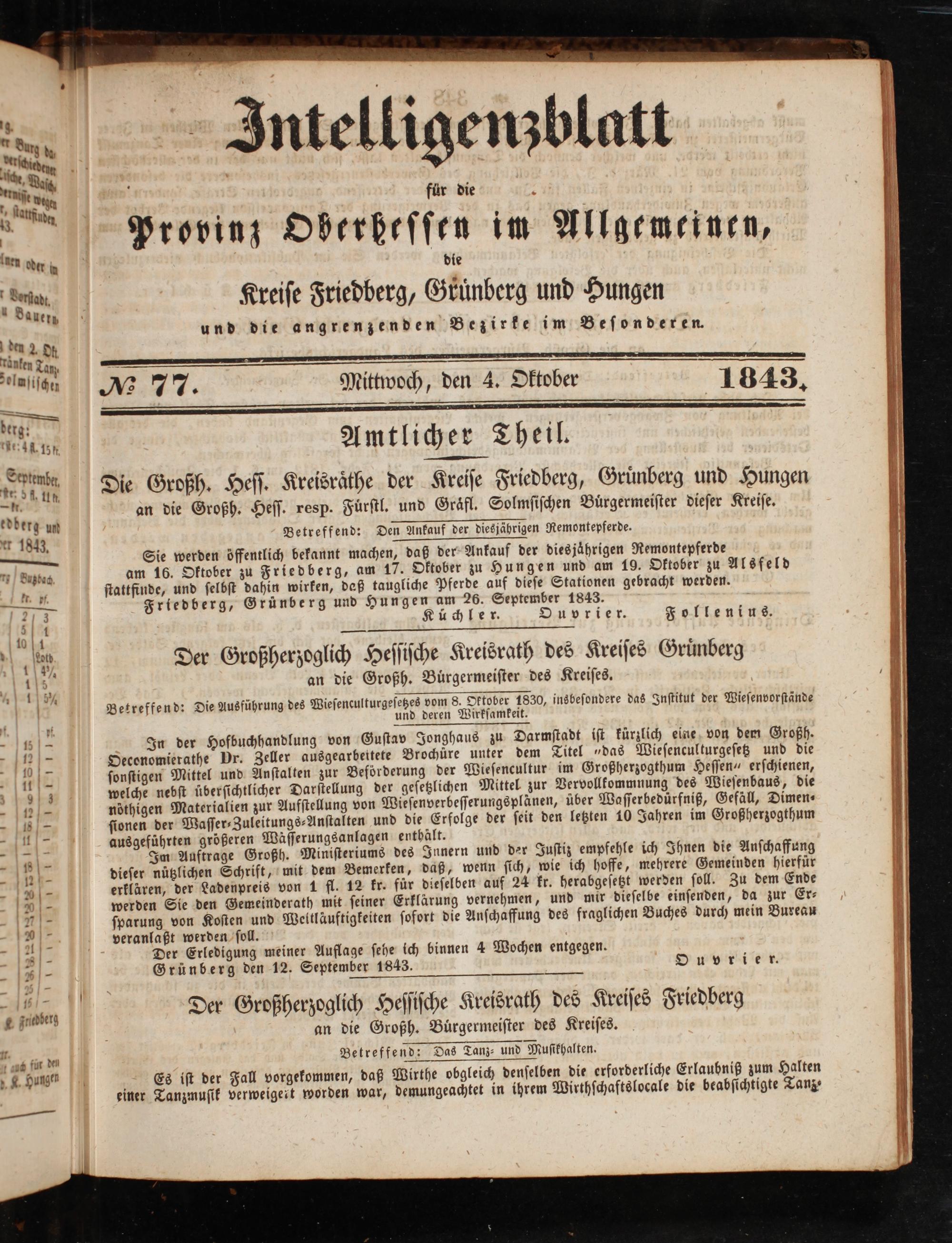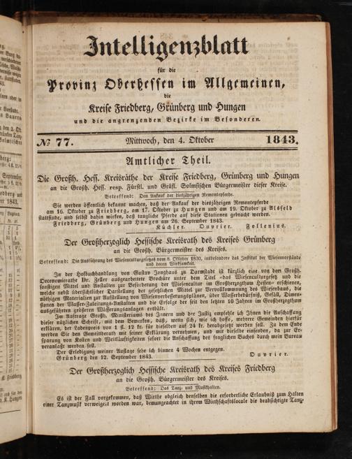 berg; 5 ö Mai Amtlicher Theil. Scrum, Die Großh. Heſſ. Kreisraͤthe der Kreiſe Friedberg, Gruͤnberg und Hungen