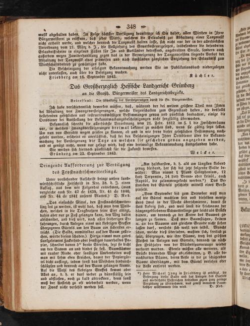 nicht unterlaſſen, auch uber die Befolgung wachen. Friedberg am 16. September 1843.