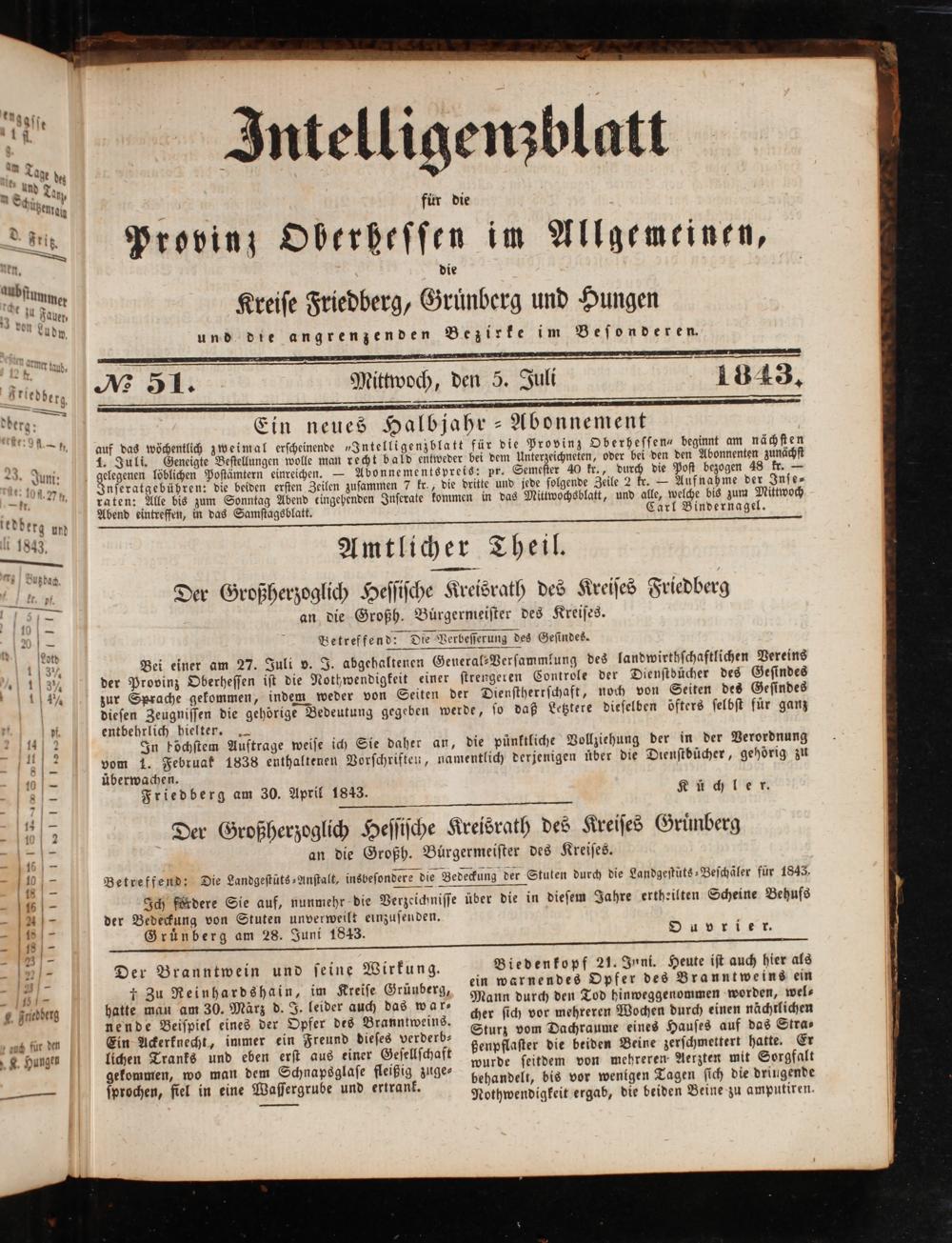auf das wöchentlich zweimal erſcheinende„Intelligenzblatt für die Provinz Oberheſſen“ beginnt am nächſten