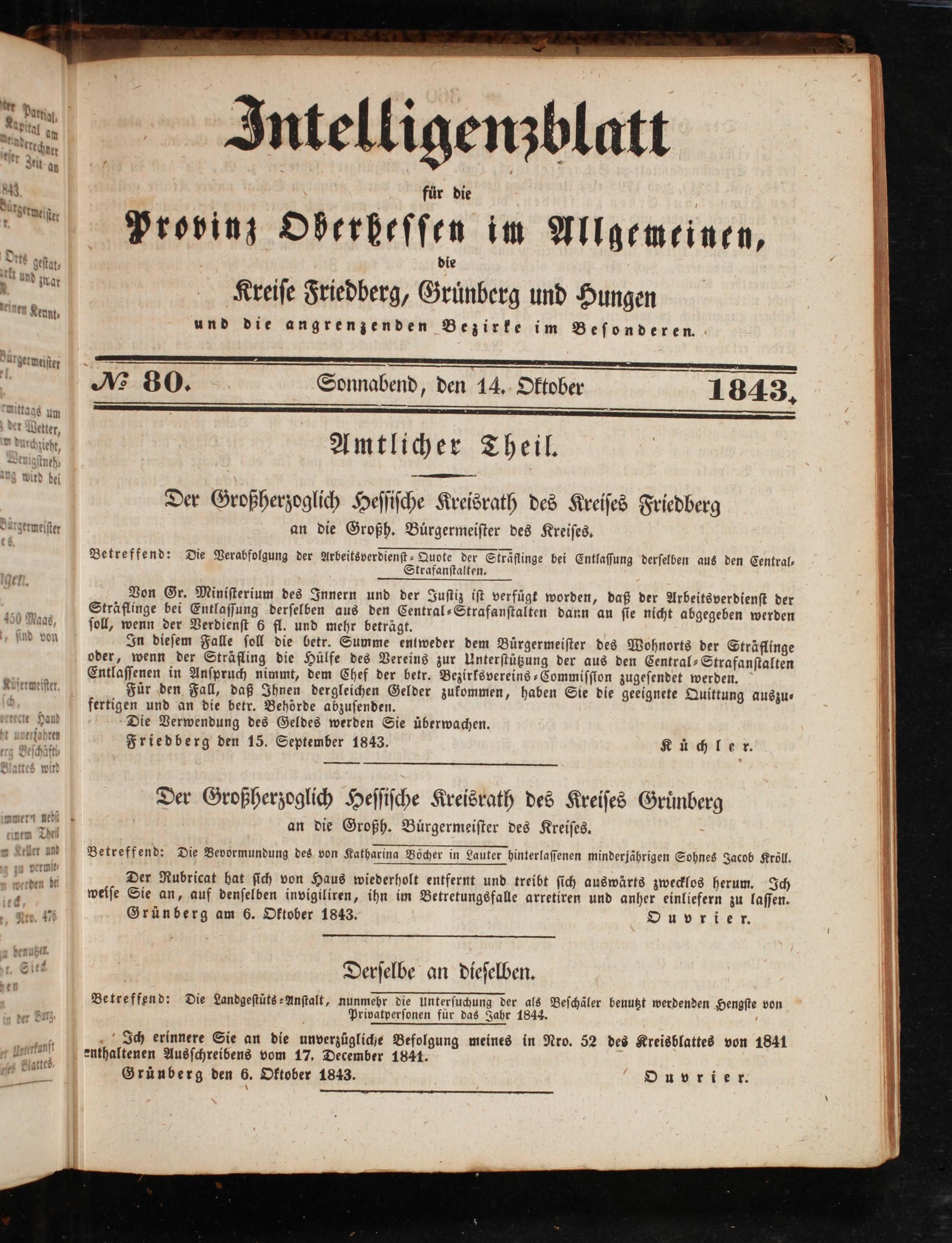 15 1 Grünberg den 6. Oktober 1843. Ouvrier.