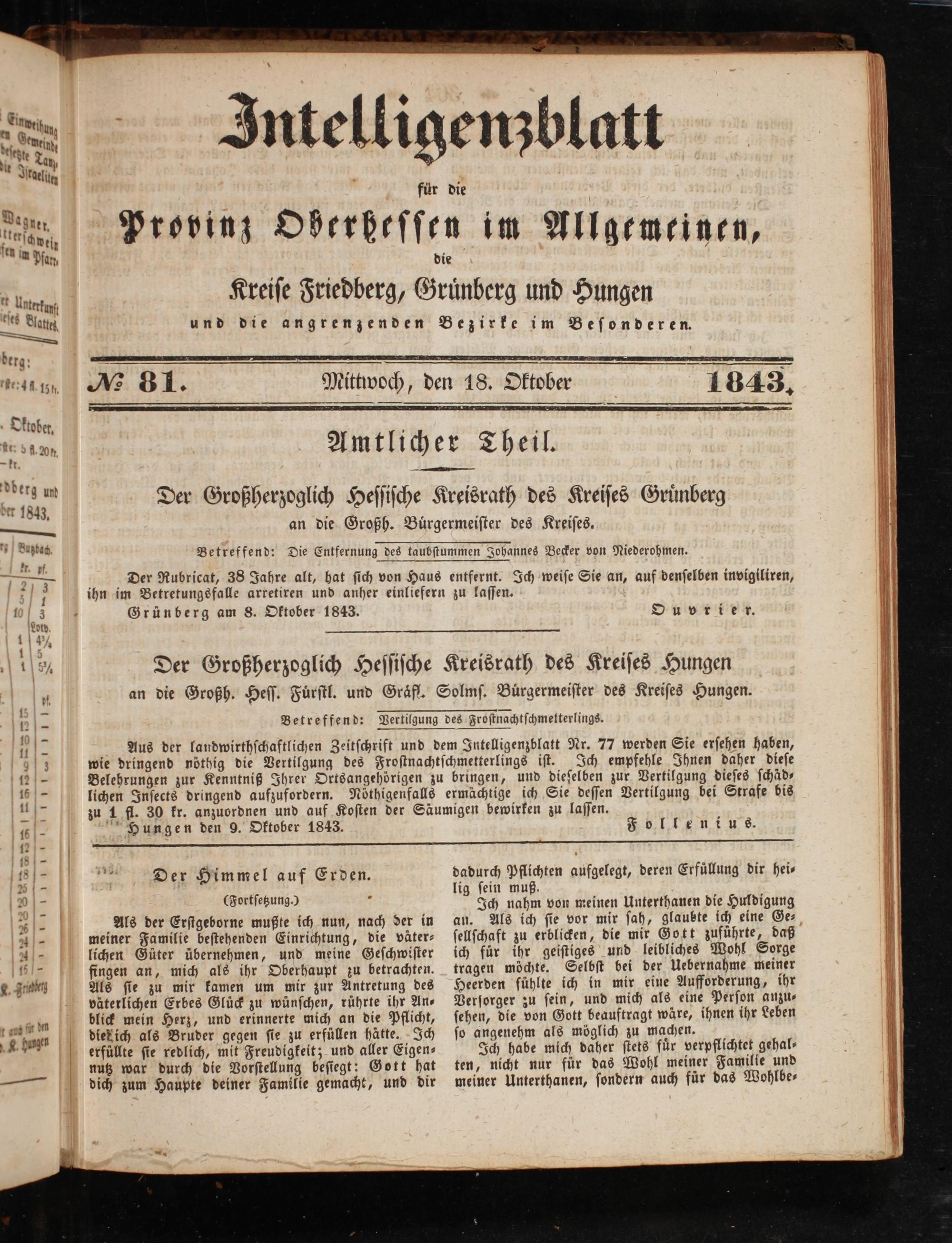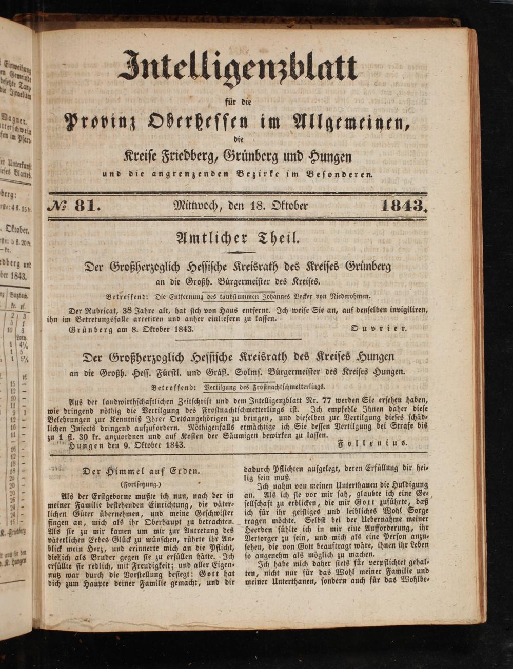 Hungen den 9. Oktober 1843.