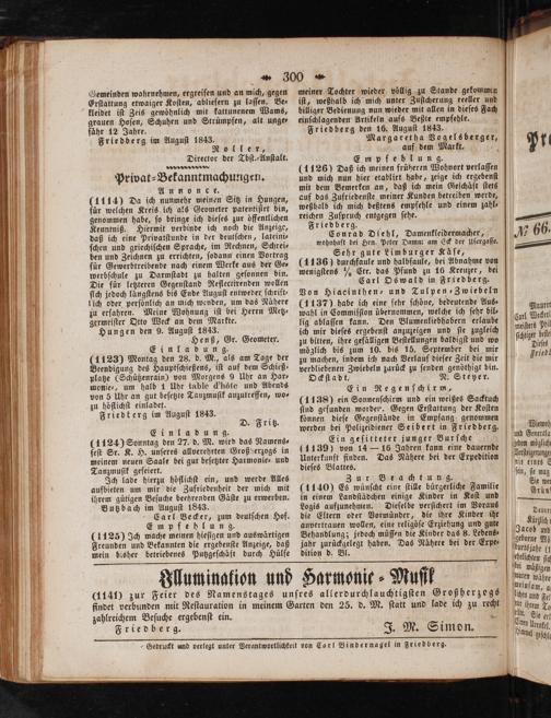 „Gedruckt und verlegt unter Verantwortlichkeit von Carl Binder nagel in Friedberg.