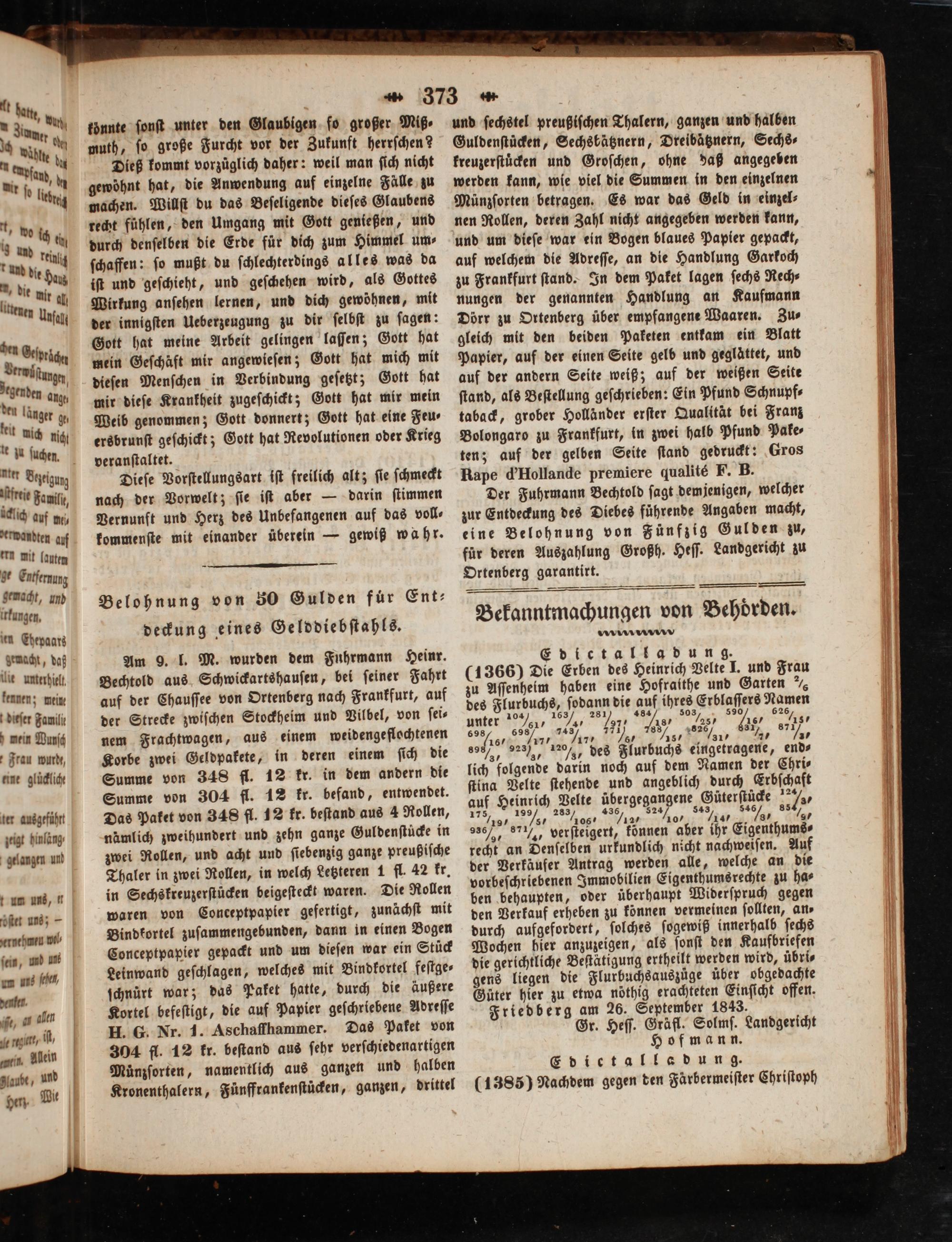Friedberg am 26. September 1843. Gr. Heſſ. Gräfl. Solmſ. Landgericht