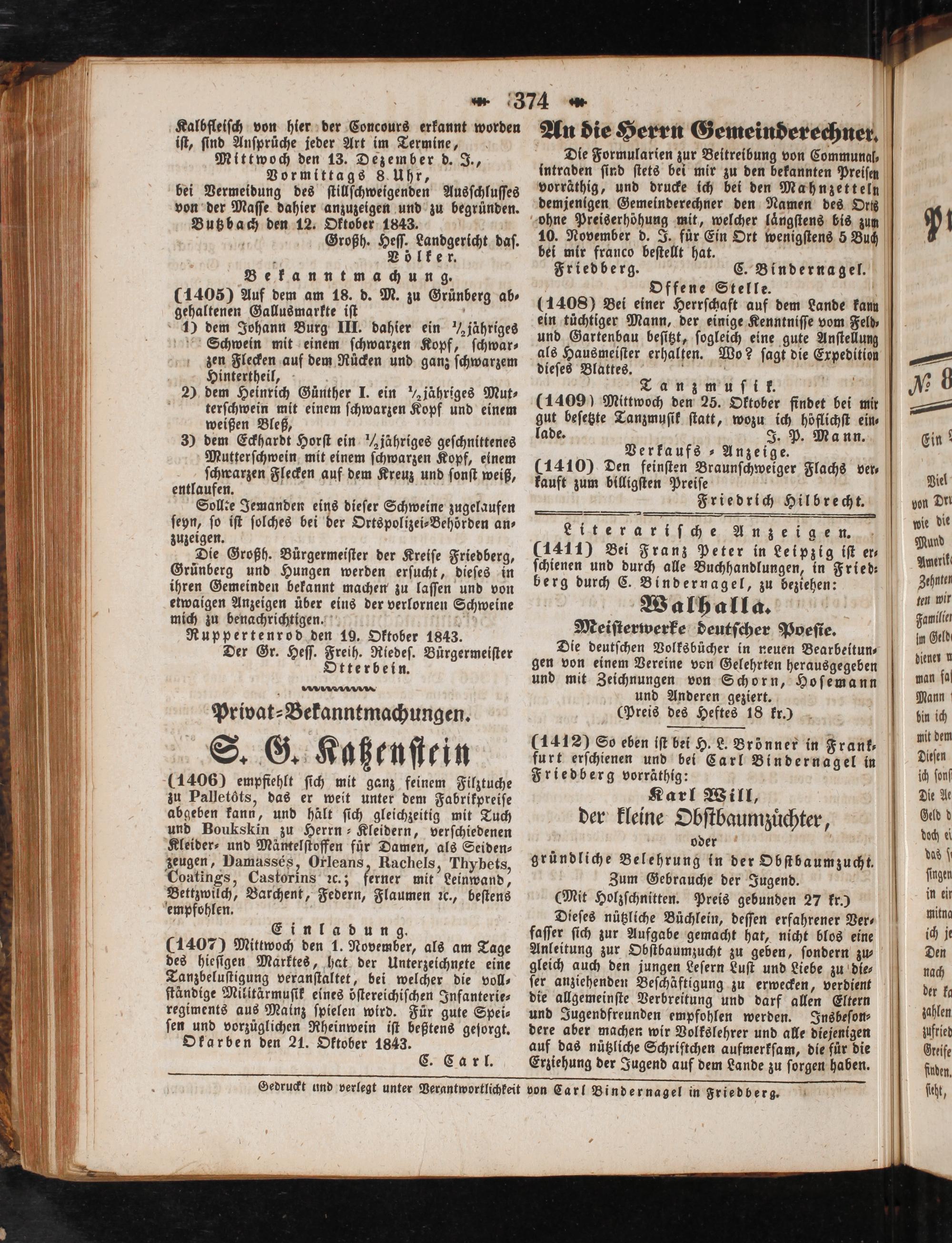 Gedruckt und verlegt unter Verantwortlichkeit von Carl Binde rnagel in Friedberg.
