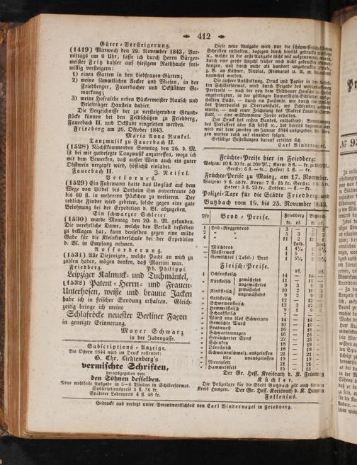 Gedruckt und verlegt unter Verantwortlichkeit von Carl Bindernagel in Friedberg.