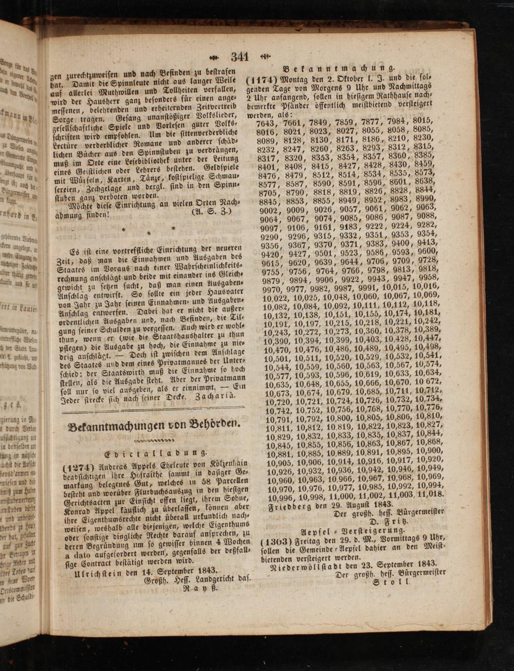 Ulrichſtein den 14. September 1843. Großh. Heſſ. Landgericht daſ.
