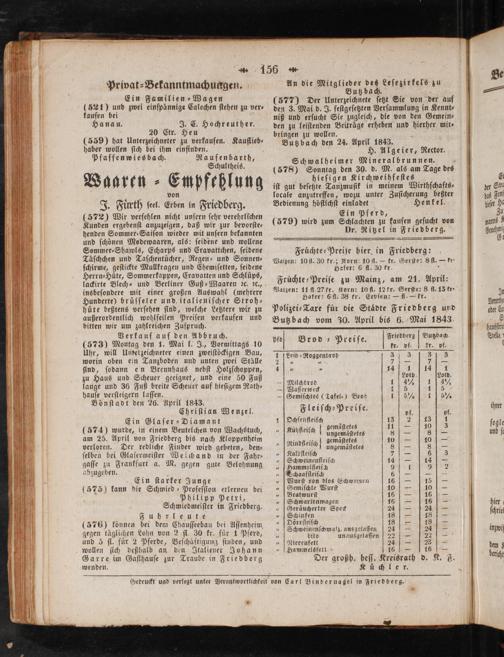 Gedruckt und verlegt unter Verantwortlichkeit von Carl Bindernagel in Friedberg.