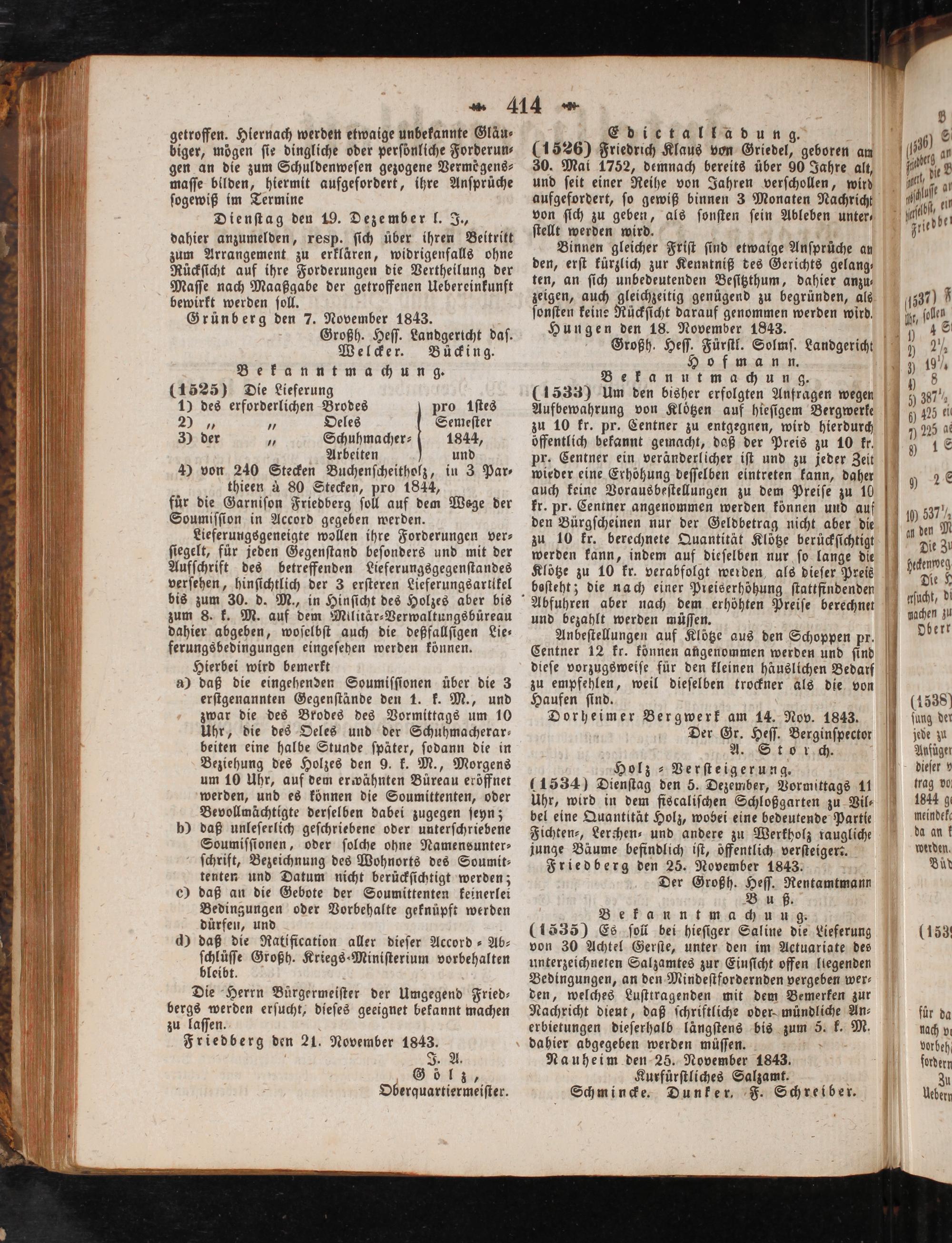 Hungen den 18. November 1843. Großh. Heſſ. Fürſtl. Solmſ. Landgericht Hofmann. Bekanntmachung. (1533) Um den bisher erfolgten Anfragen wegen Aufbewahrung von Kloͤtzen auf hieſigem Bergwerke zu 10 kr. pr. Centner zu entgegnen, wird hierdurch öffentlich bekannt gemacht, daß der Preis zu 10 kr. Pr. Centner ein veränderlicher iſt und zu jeder Zeit