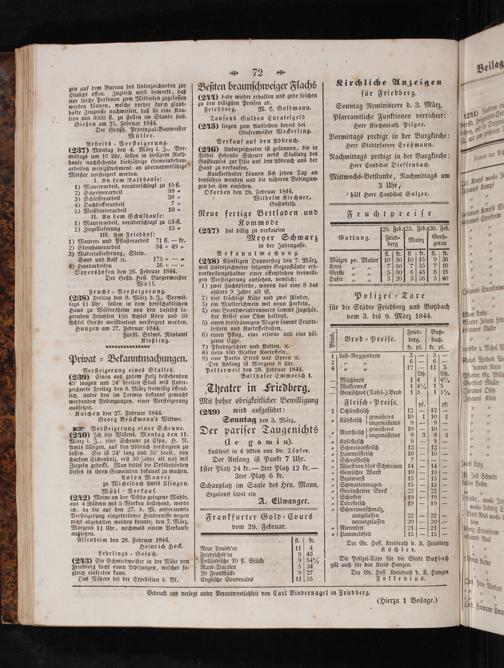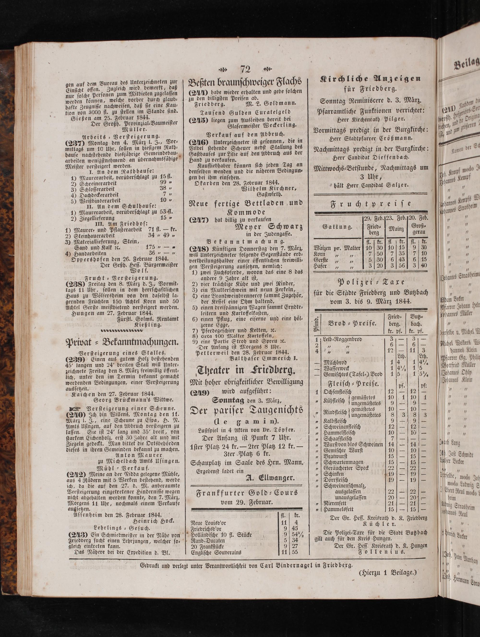 Poßerne für die Städte Friedberg und Butzbach vom 3. bis 9. März 1844.
