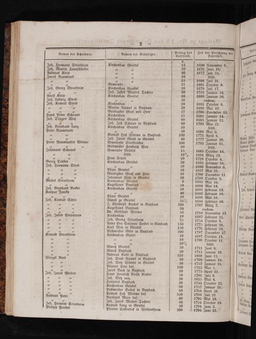 Namen ber Schuldner. gränbiger Betrag des[Zeit der Erricht ber 0 chuldner Namen der Gläubiger. Kapitals. pi der