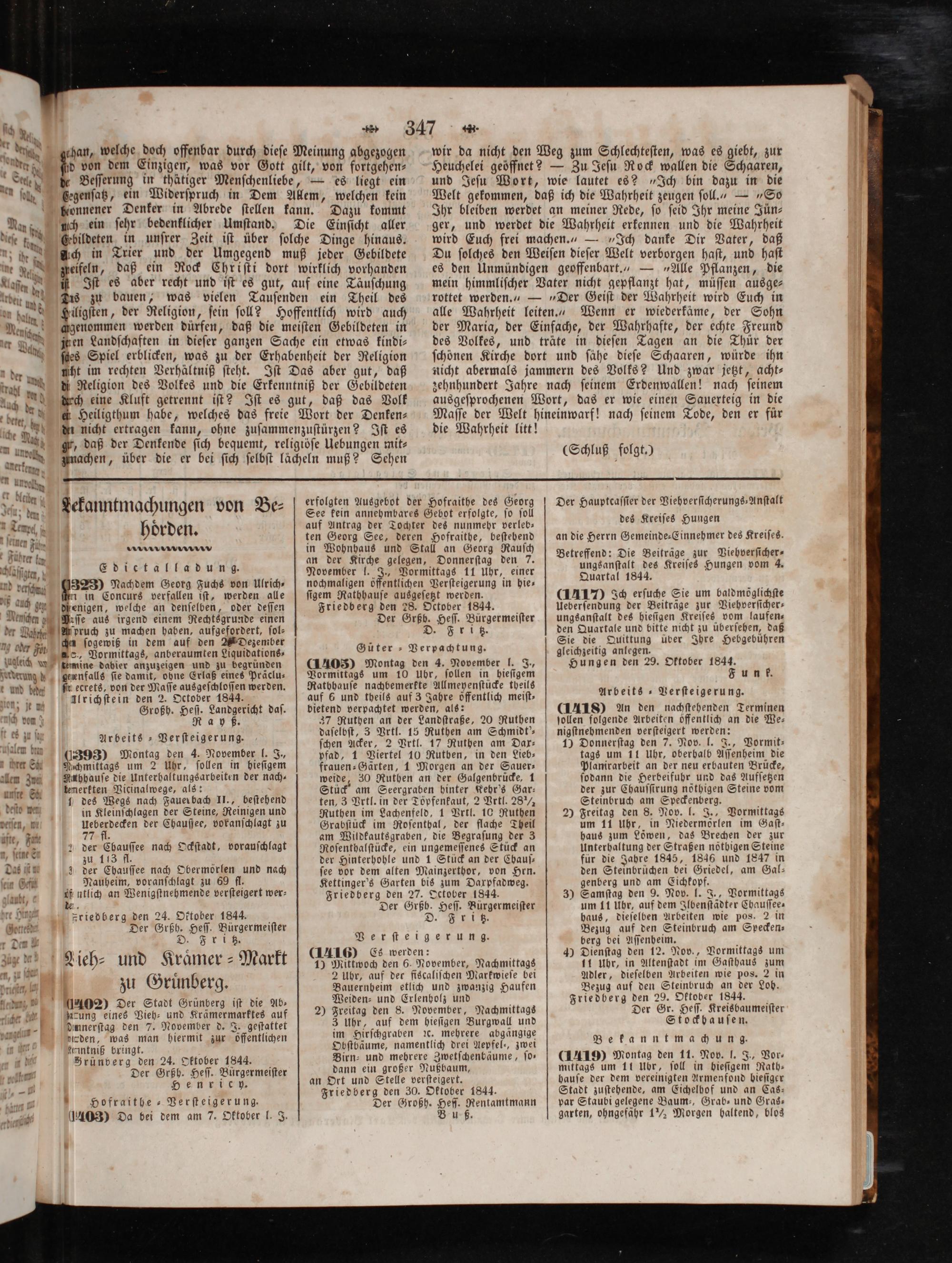 Friedberg den 24. Oktober 1844. i Der Grßh. Heſſ. Bürgermeiſter