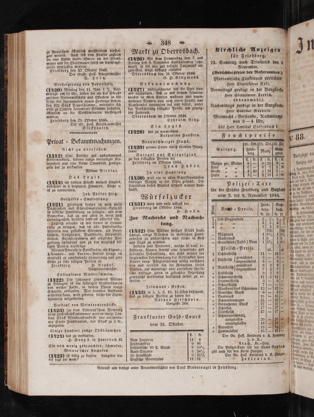 Gedruckt und verlegt unter Verantwortlichkeit von Carl Bindernagel in Friedberg.