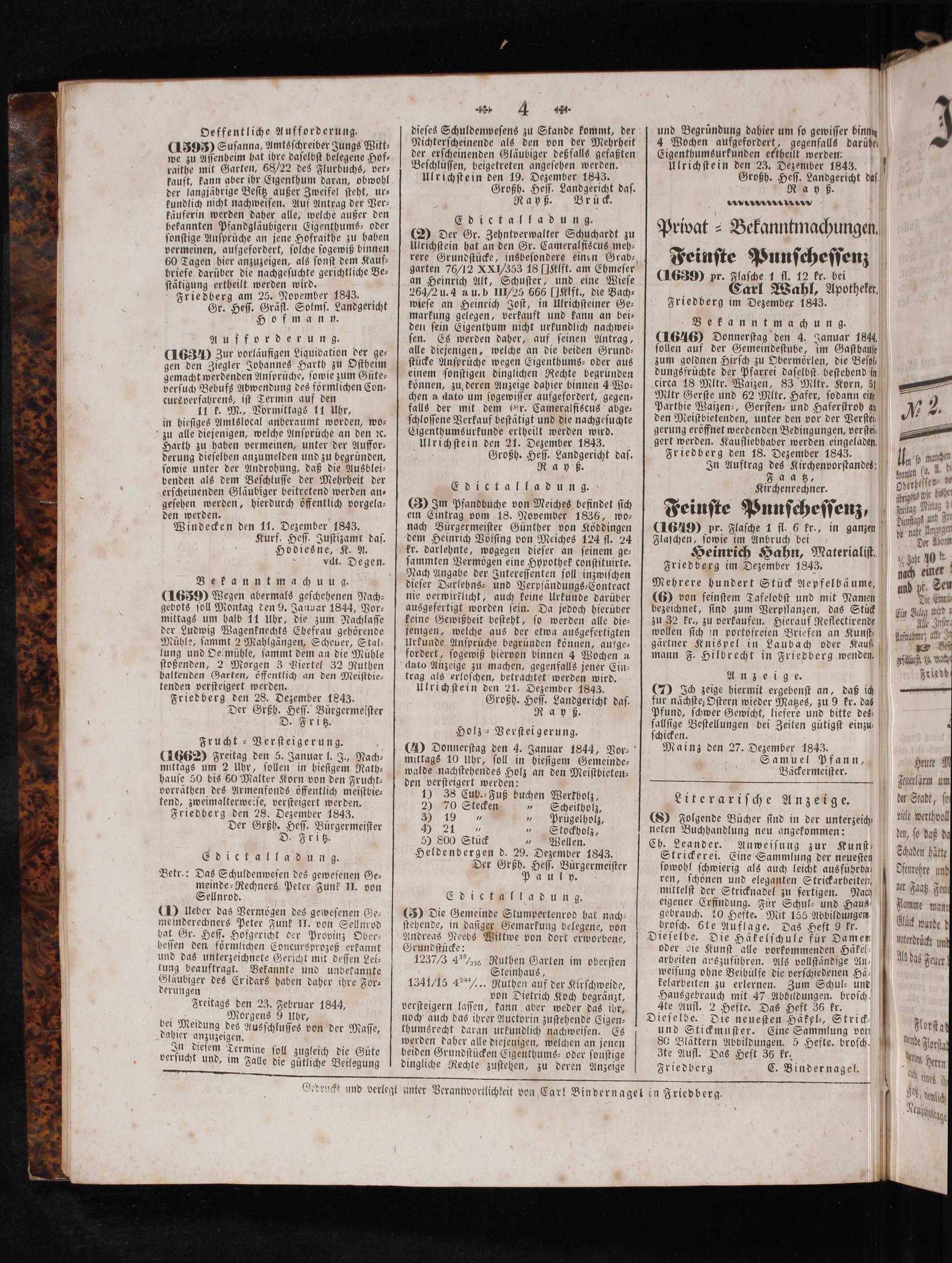 Gedruckt und verlegt unter Verantwortlichkeit von Carl Bindernagel in Friedberg.