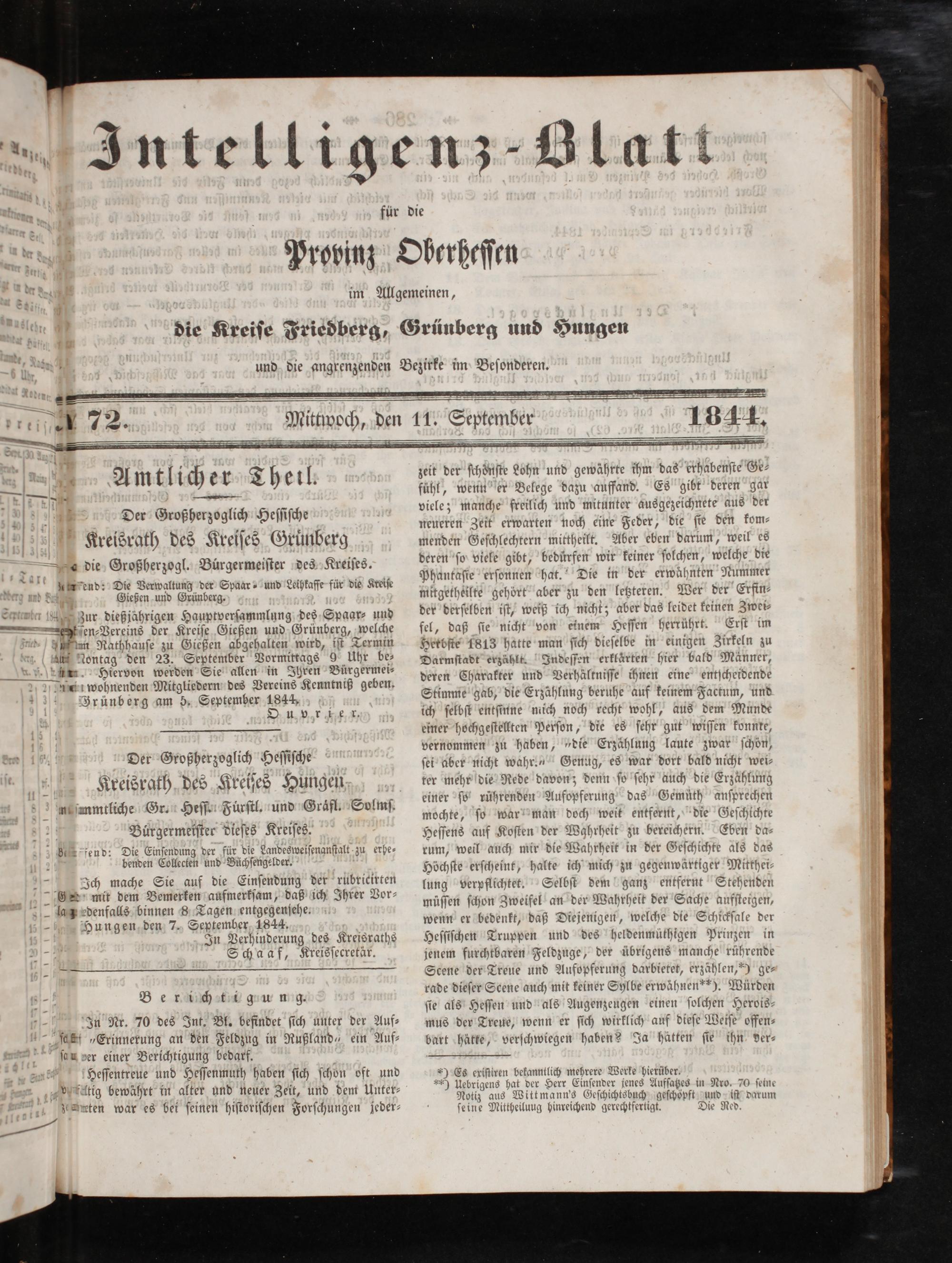 15 Der Großherzoglich Heſſiſche Kreisrath des Kreiſes Grunberg e die Großherzogl. Bürgermeiſter des Kreiſes. rend: Die Verwaltung der Spaar⸗ und Leihkafſe für die Kreiſe d Lehe Gießen und Grünberg. Sehne ten zur dießjährigen Hauptverſammlung des Spaar⸗ und — ſen⸗Vereins der Kreiſe Gießen und Grünberg, welche un Rathhauſe zu Gießen abgehalten wird, iſt Termin u ontag den 23. September Vormittags 9 Uhr be⸗ enn. Hiervon werden Sie allen in Ihren Bürgermei⸗ mne wohnenden Mitgliedern des Vereins Kenntniß geben. a Zrünberg am 5. September 1844. Ou per i e. x,