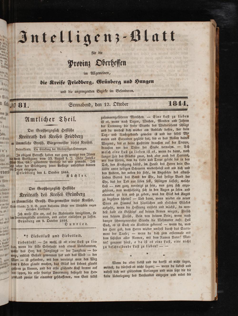 Baättffend: J. U. S. gegen Katharina Mohr von Ulrichſtein wegen einfachen Diebſtahls. * Ich weiſe Sie an, auf die Rubricatin invigiliren, ſie im Letretungsfalle arretiren, und anher einliefern zu laſſen. Grünberg am 9. October 1844. Su die.