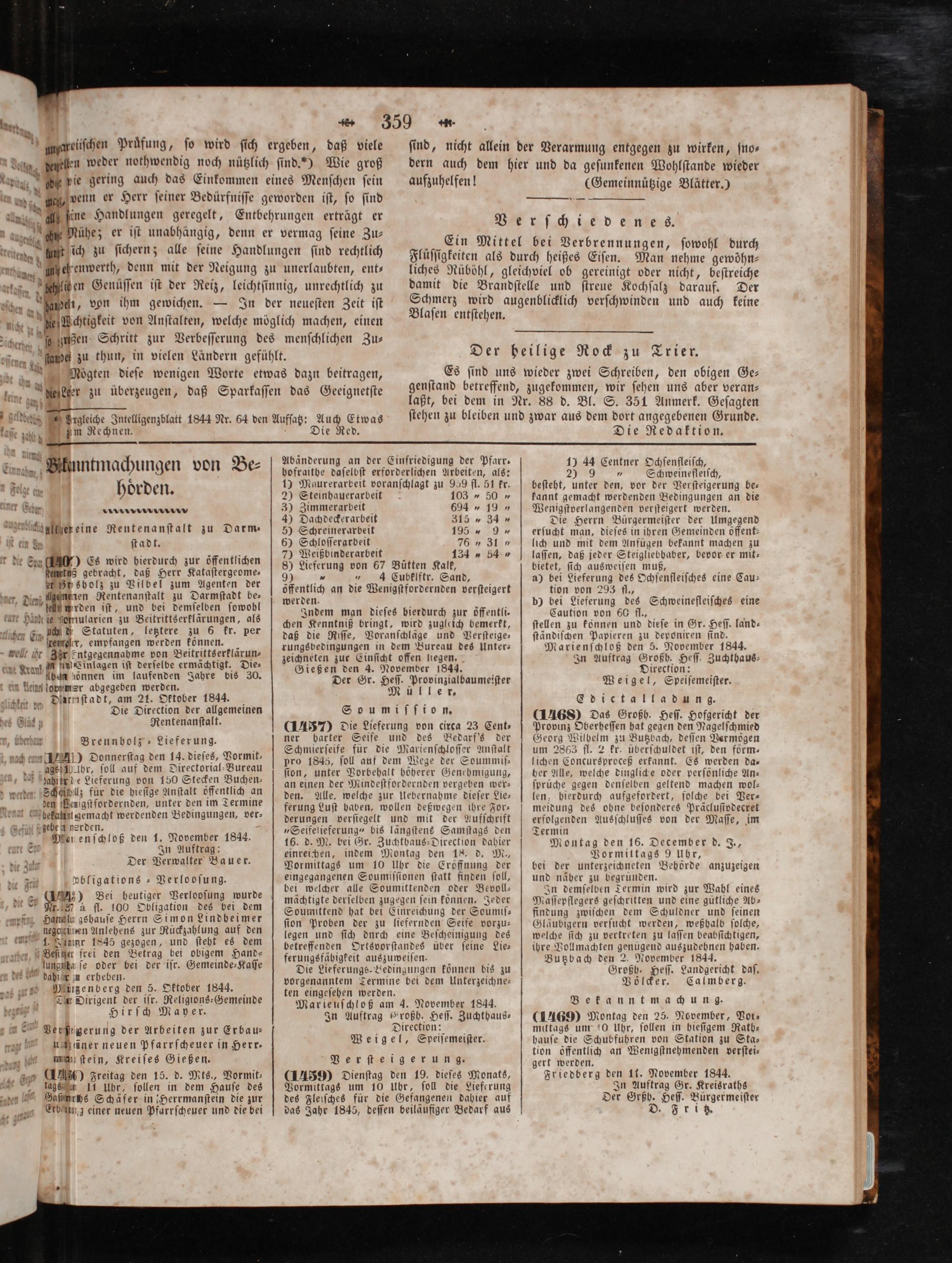 Marienſchloß den 5. November 1844. In Auftrag Großh. Heſſ. Zuchthaus⸗ Direction: Weigel, Speiſemeiſter.