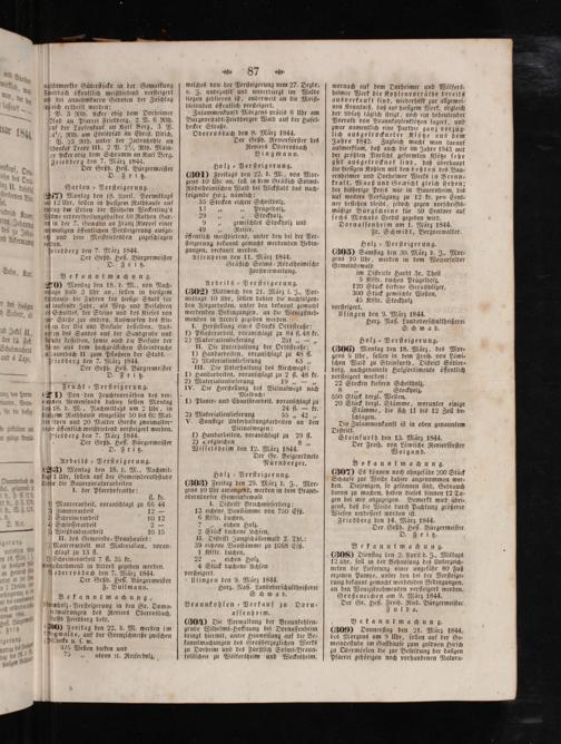 Bekanntmachung. (309) Donnerſtag den 21. März 1844, des Morgens um 9 Uhr, ſollen auf der Ge— meindeſtube im Gaſthauſe zum goldnen Hirſch zu QObermörlen die zur Beſoldung der daſigen Pfarrei gehörigen noch vorhandenen Naturag—