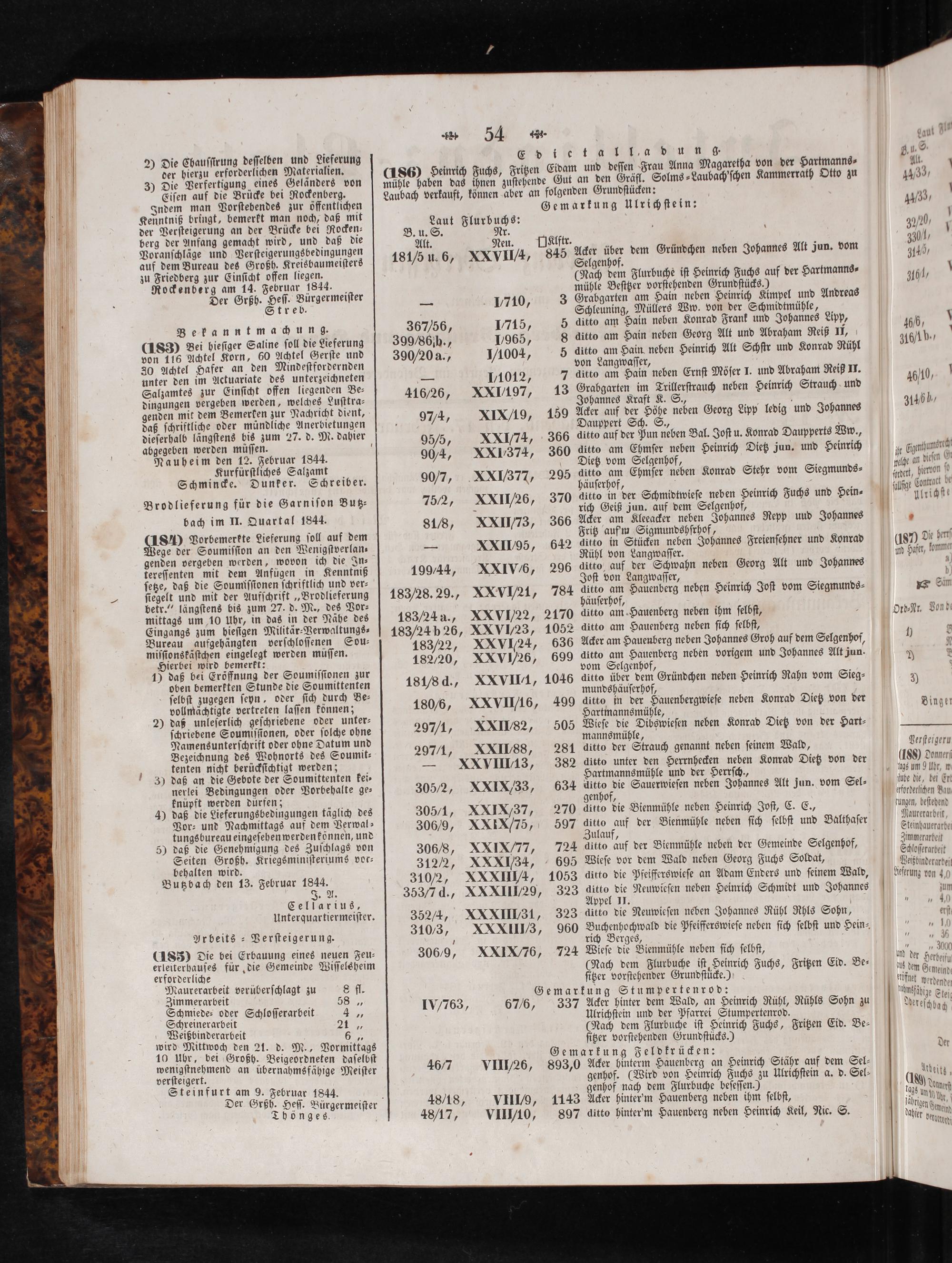 zu Friedberg zur Einſicht offen liegen. Rockenberg am 14. Februar 1844. Der Grßh. Heſſ. Bürgermeiſter Streb.