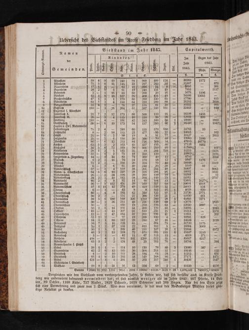 8„ 90. 5 0 Ueberſicht des Viehſtandes im Kreiſe Friedberg im Jahr 1843.
