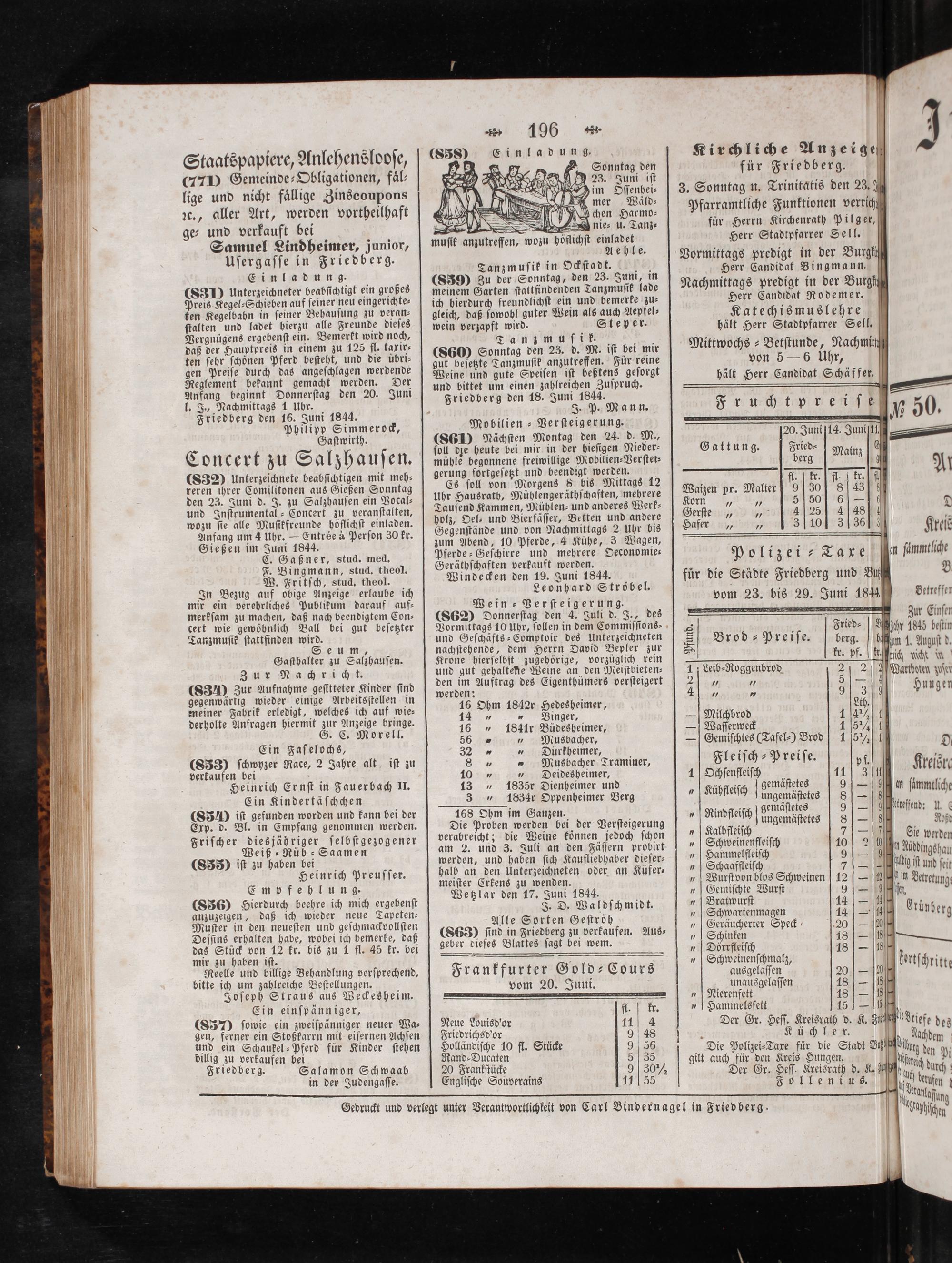 Gedruckt und verlegt unter Verantwortlichkeit von Carl Bindernagel in Friedberg