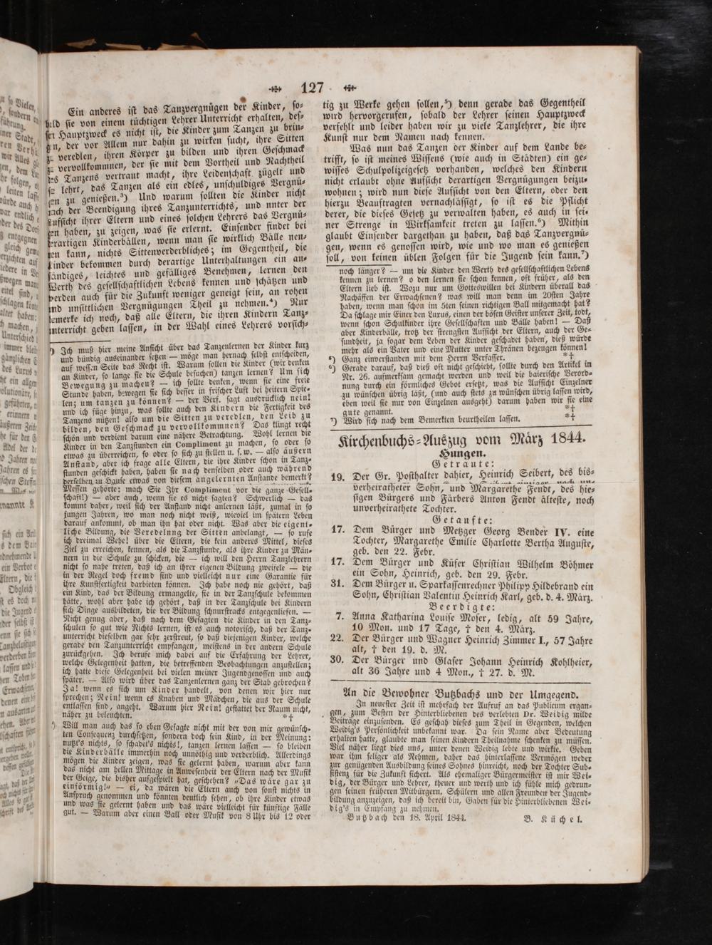 gute genannt. 1 *) Wird ſich nach dem Bemerkten beurtheilen laſſen. 5 Kirchenbuchs-Auszug vom Maͤrz 1844. Hungen.