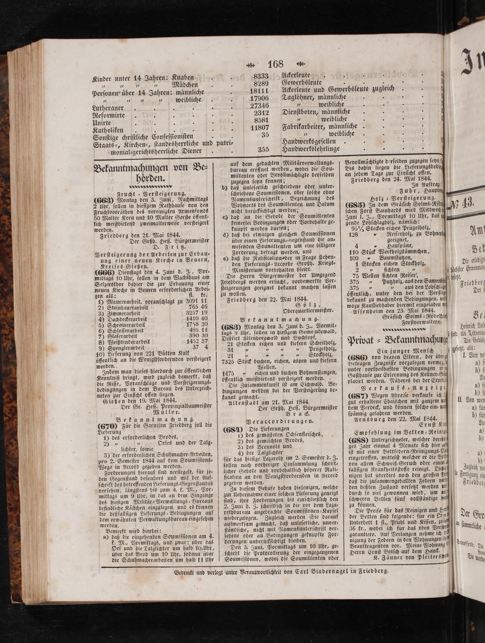 Gedruckt und verlegt unter Verantwortlichkeit von Carl Bindernagel in Friedberg.