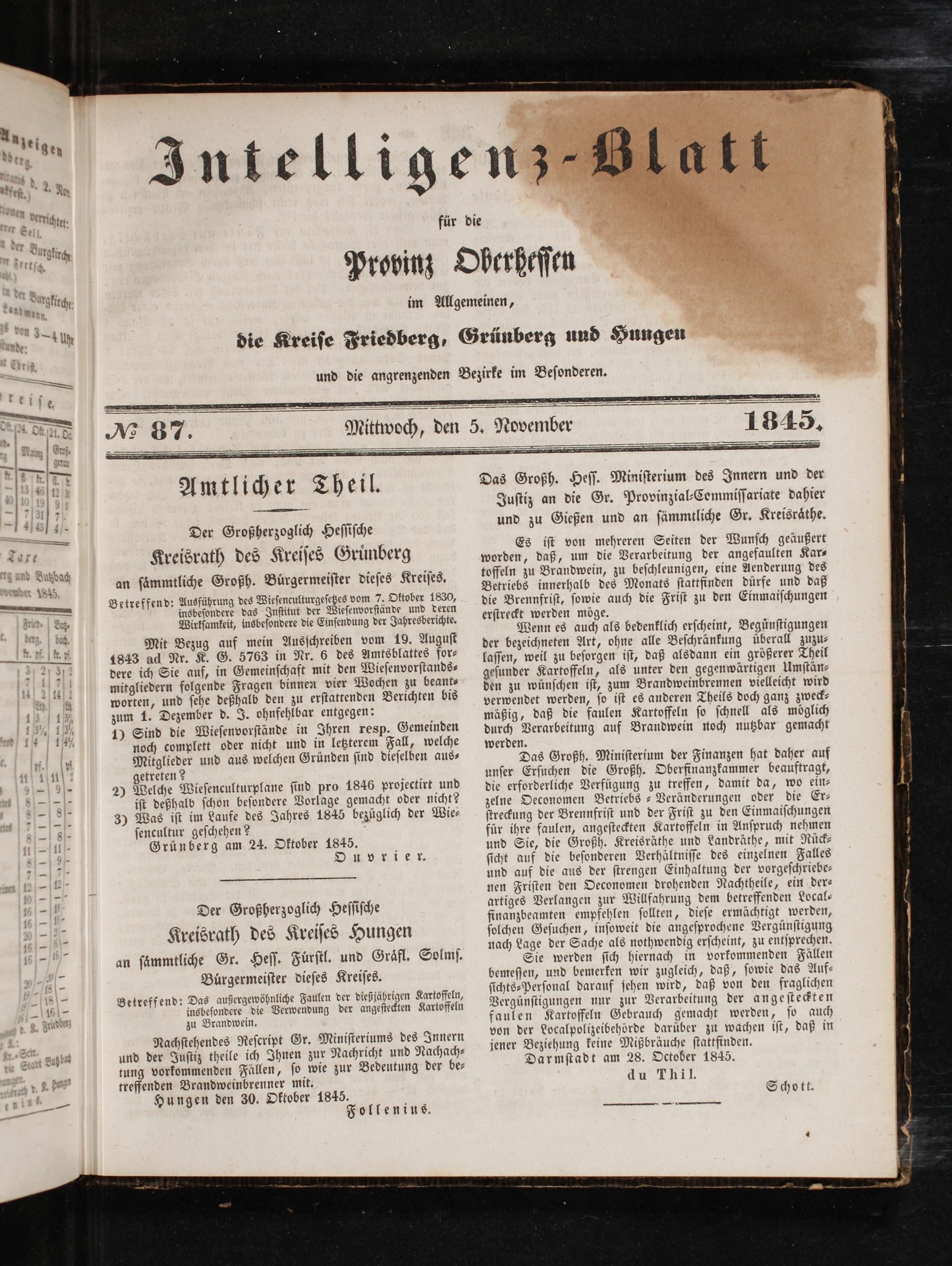 Hungen den 30. Oktober 1845. i Follenius.