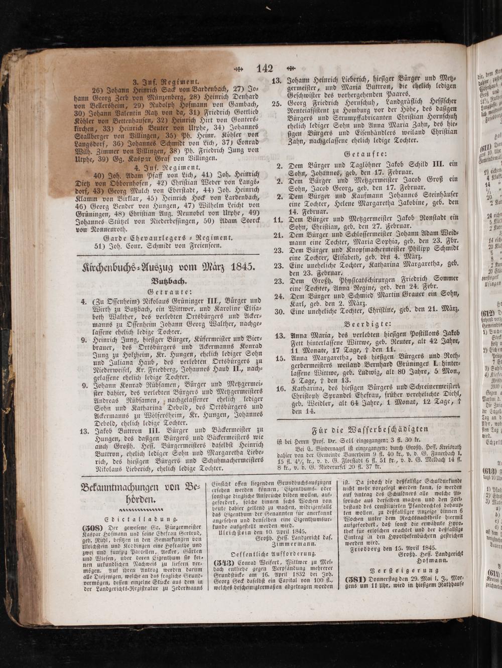Kirchenbuchs⸗Auszug vom Maͤrz 1845. Butzbach.