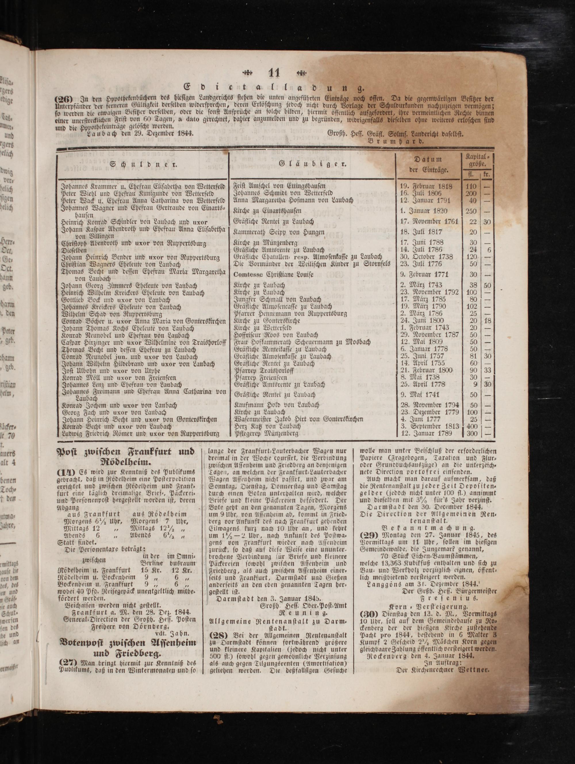 Darmſtadt den 30. December 1844. Die Direction der Allgemeinen Ren⸗