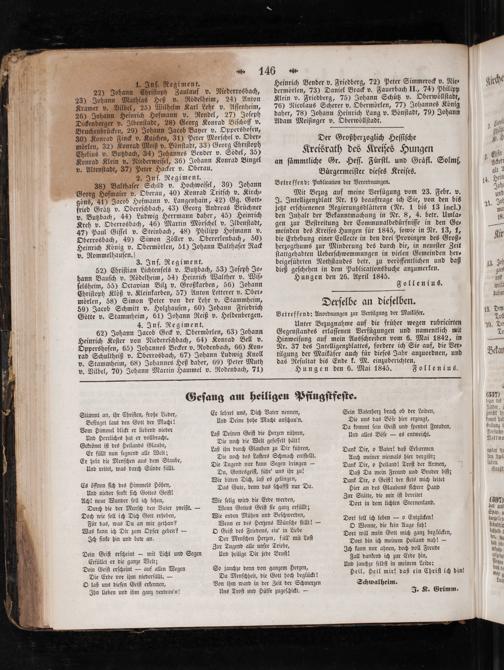 Der Großherzoglich Heſſiſche Kreisrath des Kreiſes Hungen an ſaͤmmtliche Gr. Heſſ. Fuͤrſtl. und Graͤfl. Solmf, Buͤrgermeiſter dieſes Kreiſes. Betreffend: Publication der Verordnungen.