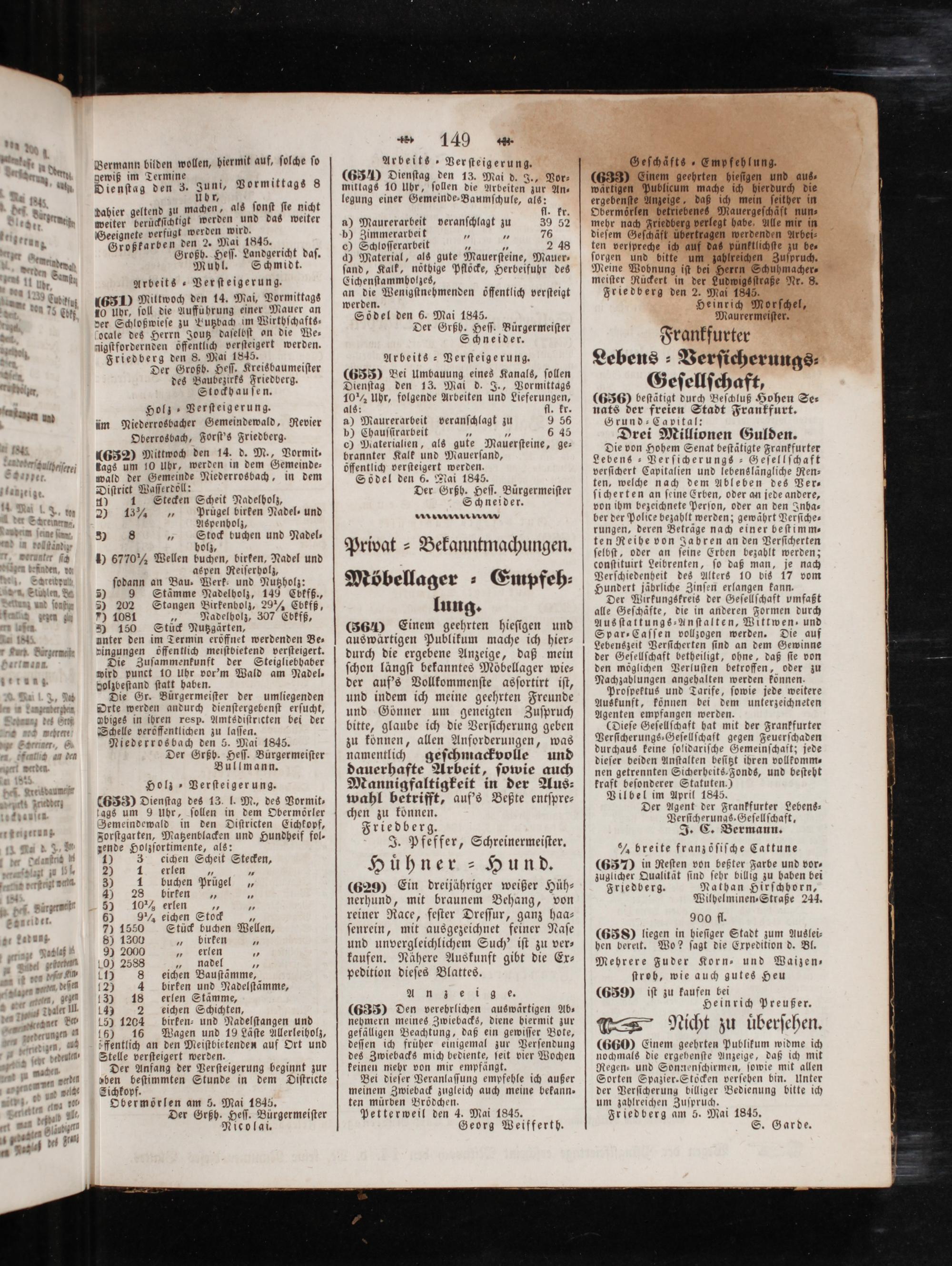 c) Materialien, als gute Mauerſteine, ge— brannter Kalk und Mauerſand, öffentlich verſteigert werden. Södel den 6. Mai 1845. Der Grßh. Heſſ. Bürgermeiſter Schneider. NUN