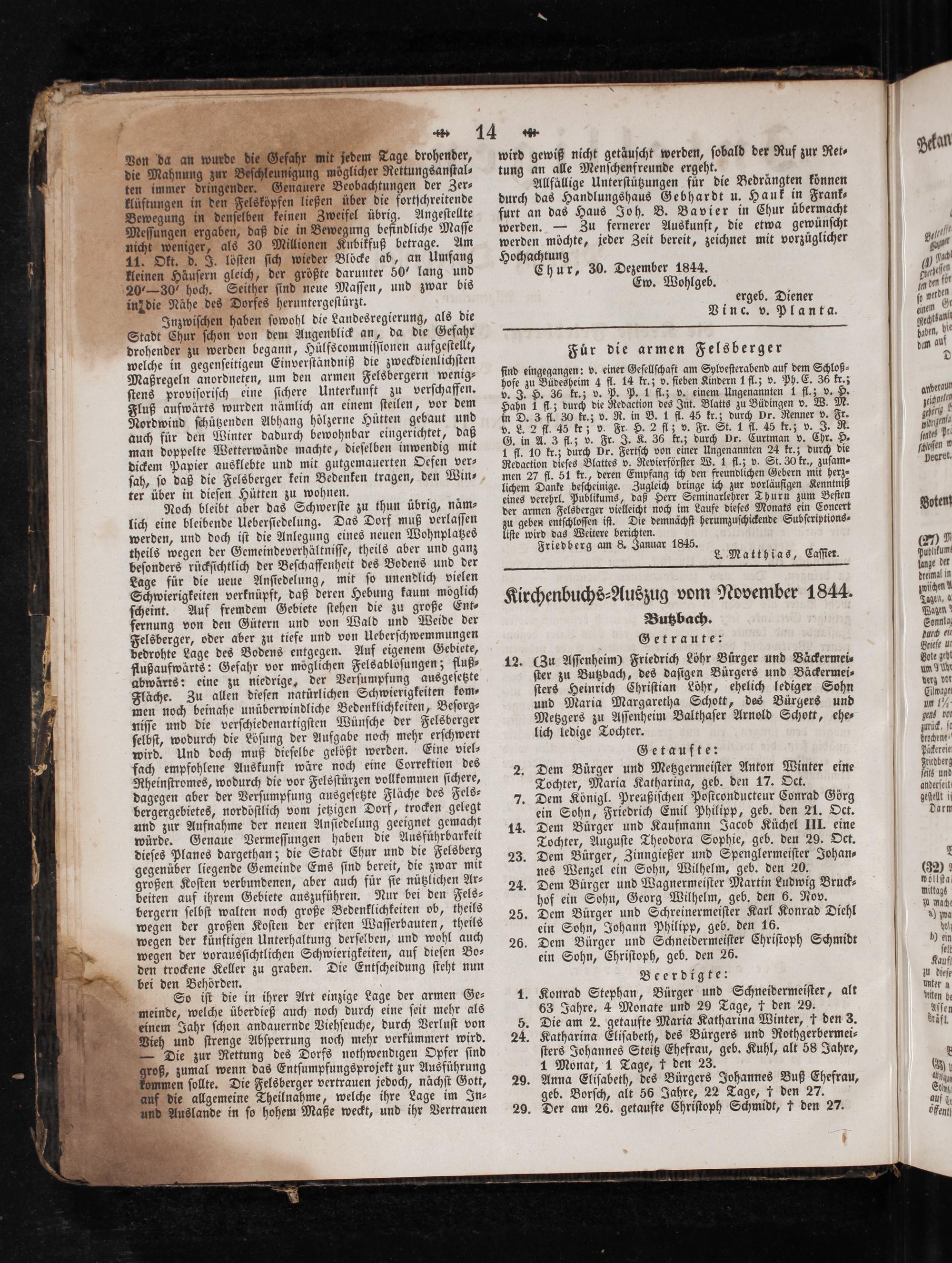 Chur, 30. Dezember 1844. Ew. Wohlgeb. ergeb. Diener Vinc. v. Planta.