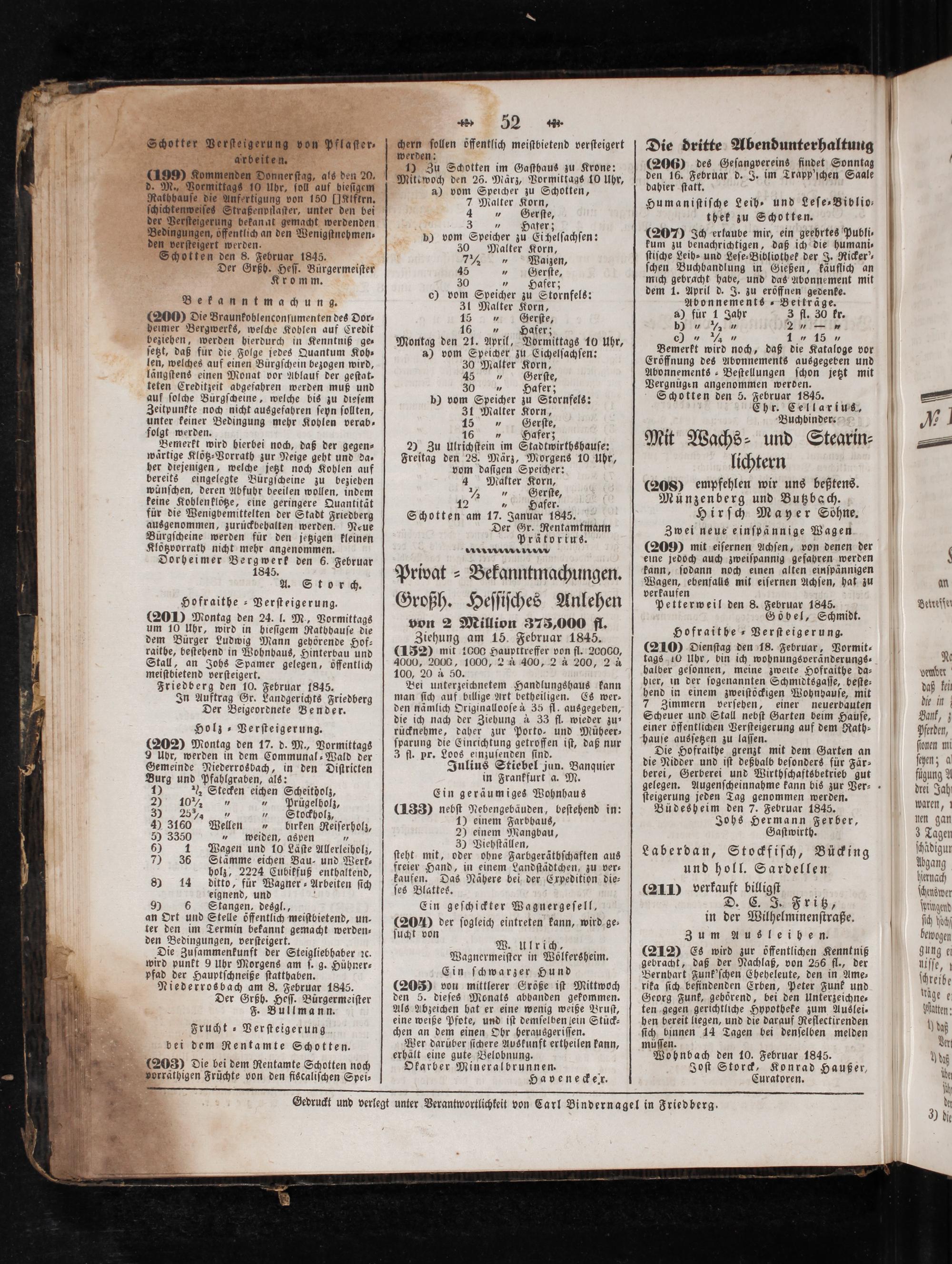 Gedruckt und verlegt unter Verantwortlichkeit von Carl Bindernagel in Friedberg.