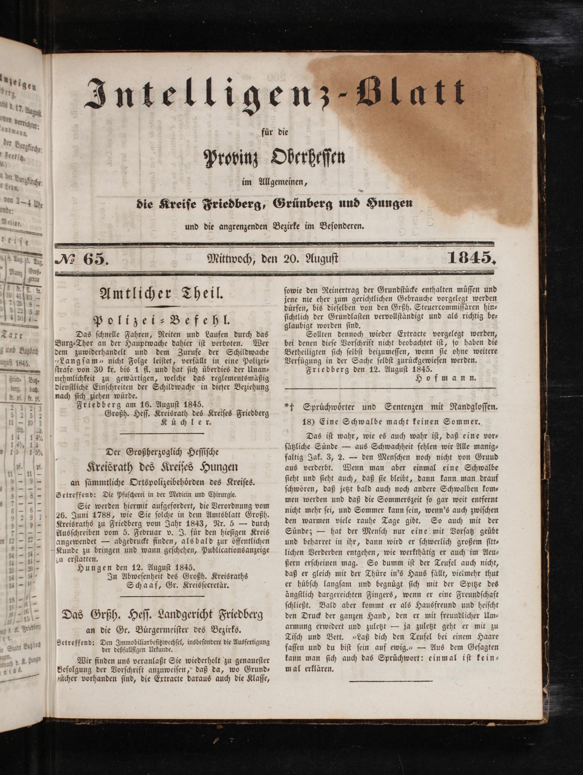 Friedberg den 12. Auguſt 1845.