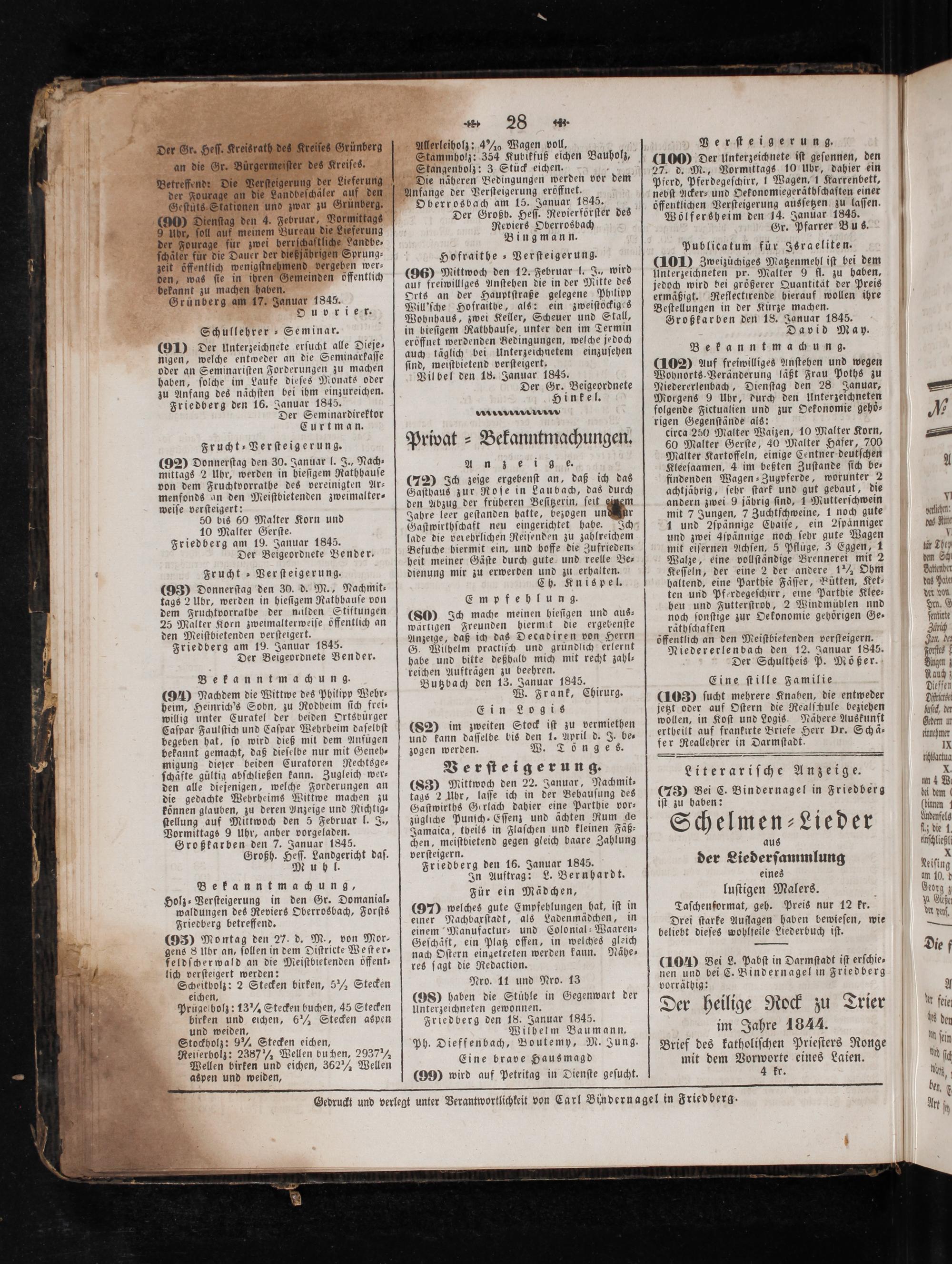 nen und bei C. Bindernagel in Friedberg