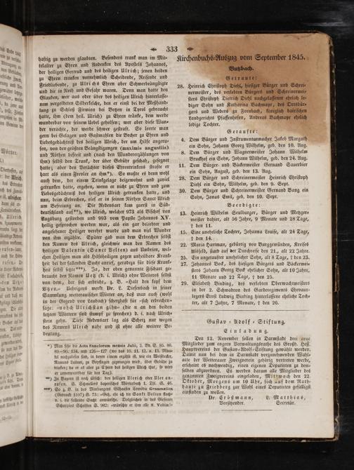 Kirchenbuchs⸗Auszug vom September 1845. Butzbach.