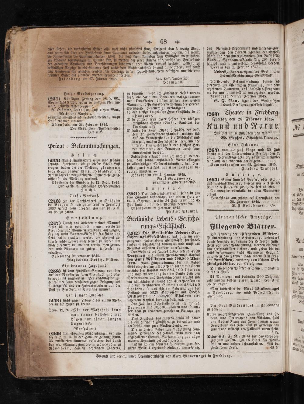 Gedruckt und verlegt unter Verantwortlichkeit von Carl Bindernagel in Friedberg.