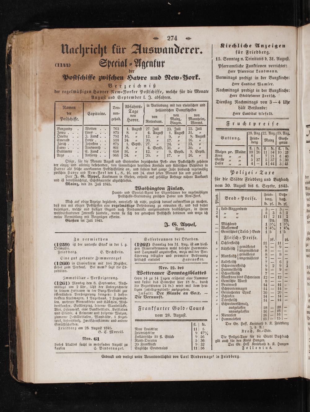 Gedruckt und verlegt unter Verantwortlichkeit von Carl Bindernagel in Friedberg.