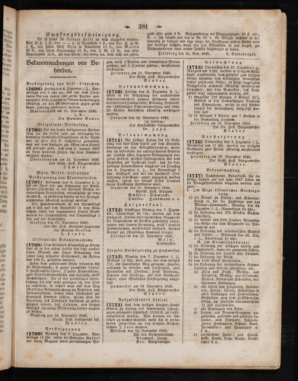 Friedberg den 30. Nov. 1846.