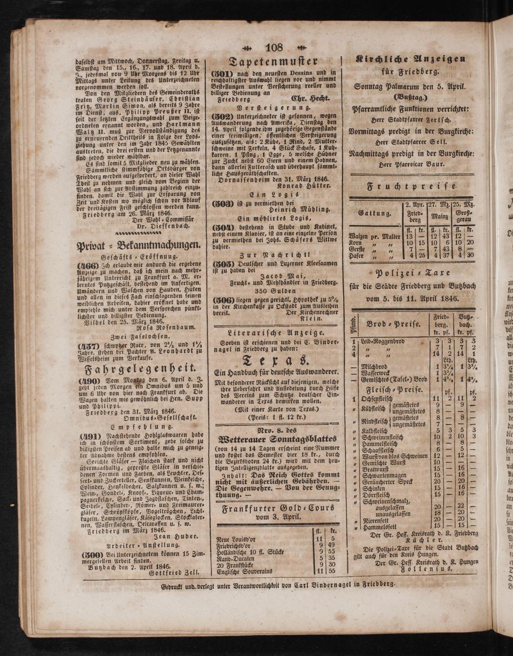 Gedruckt und verlegt unter Verantwortlichkeit von Carl Bindernagel in Friedberg.