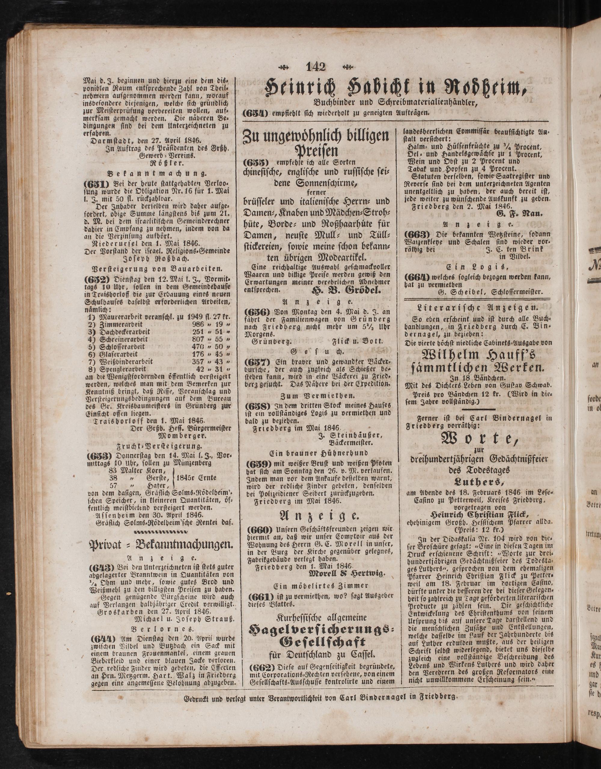 g Gedruckt und verlegt unter Verantwortlichkeit von Carl Bindernagel in Friedberg